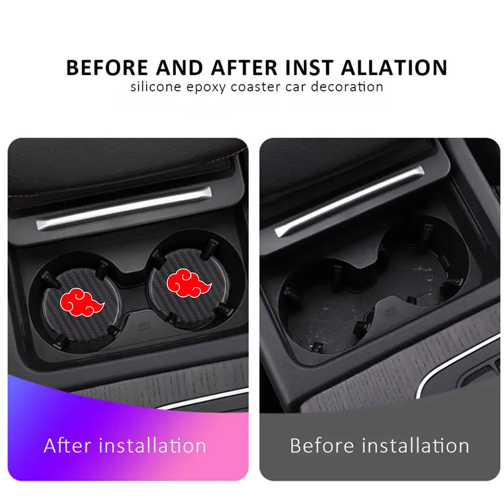 Brand New Universal 2PCS Naruto Cloud Akatsuki Real Carbon Fiber Car Cup Holder Pad Water Slot Non-Slip Mat