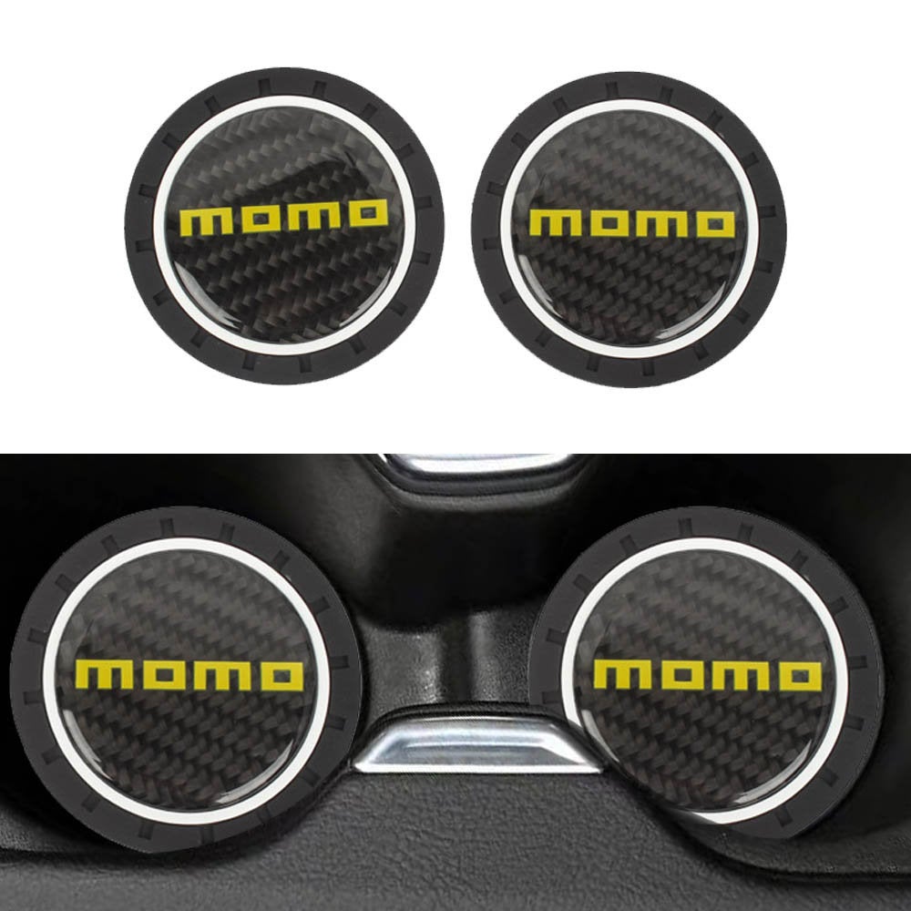 Brand New 2PCS MOMO Real Carbon Fiber Car Cup Holder Pad Water Cup Slot Non-Slip Mat Universal
