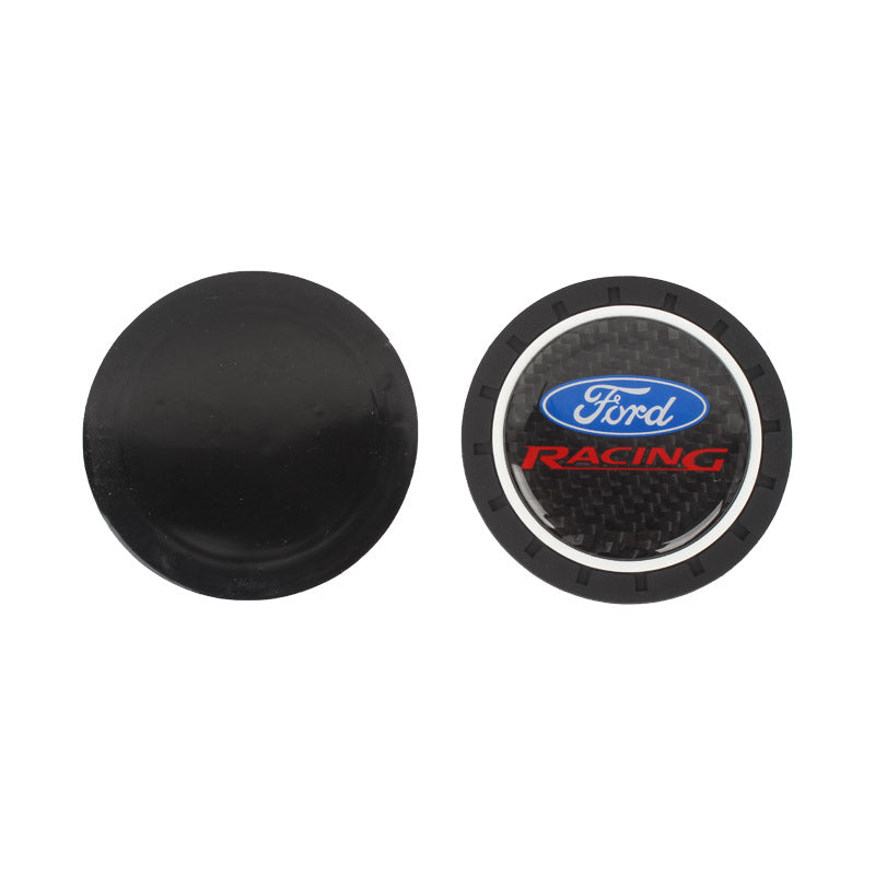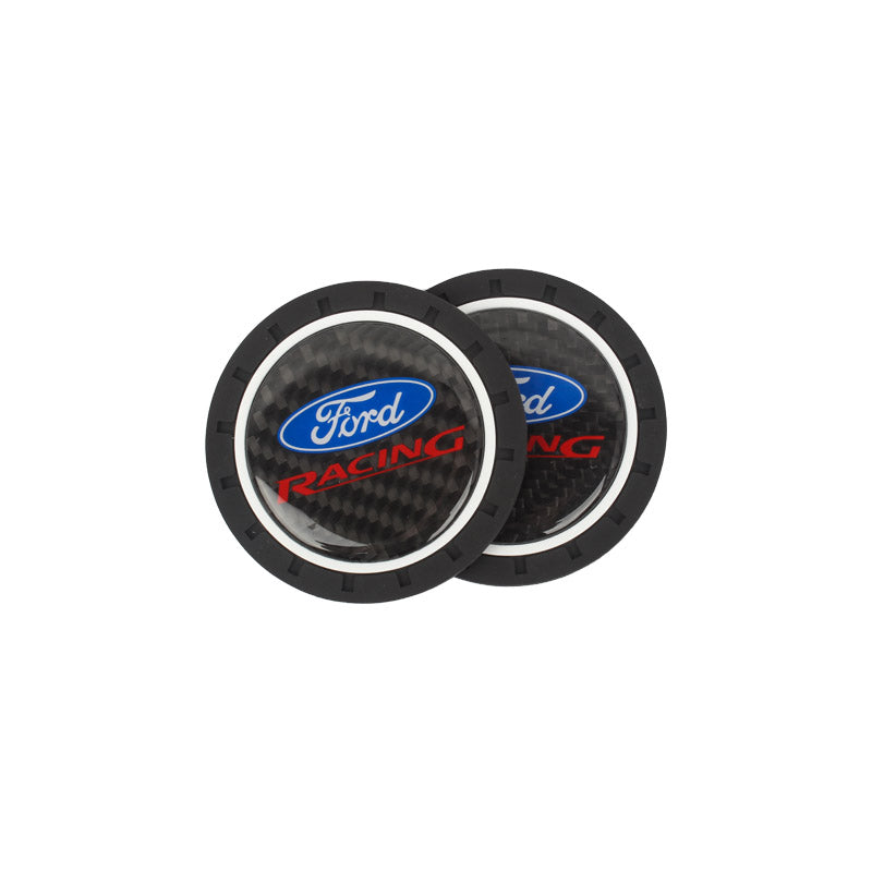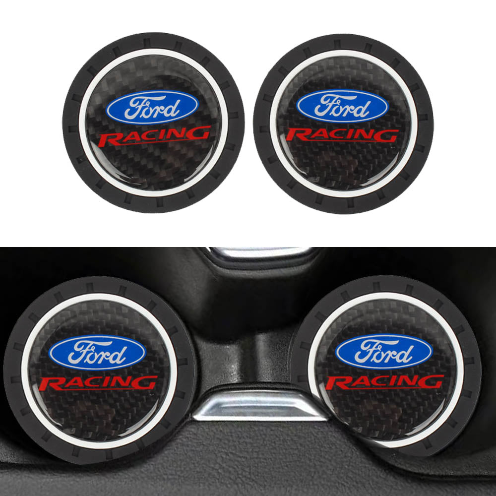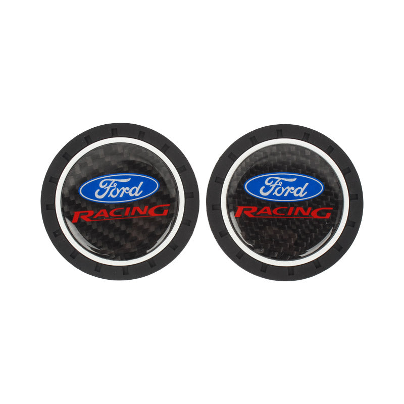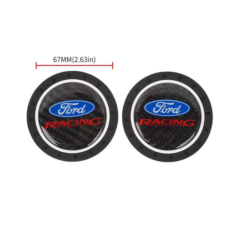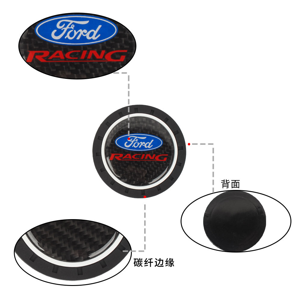 Brand New 2PCS Ford Racing Real Carbon Fiber Car Cup Holder Pad Water Cup Slot Non-Slip Mat Universal