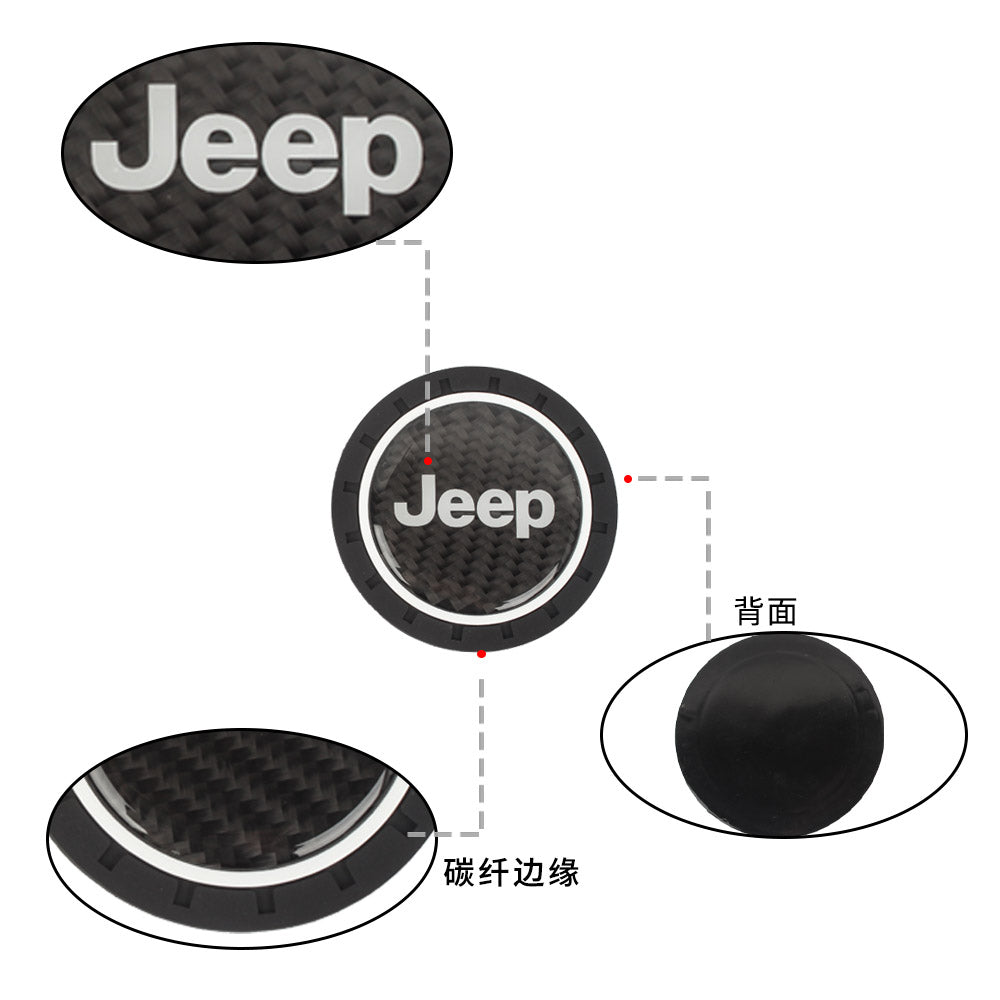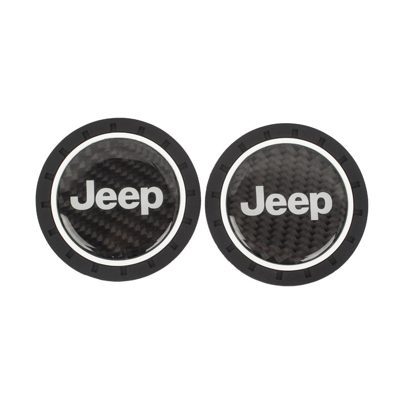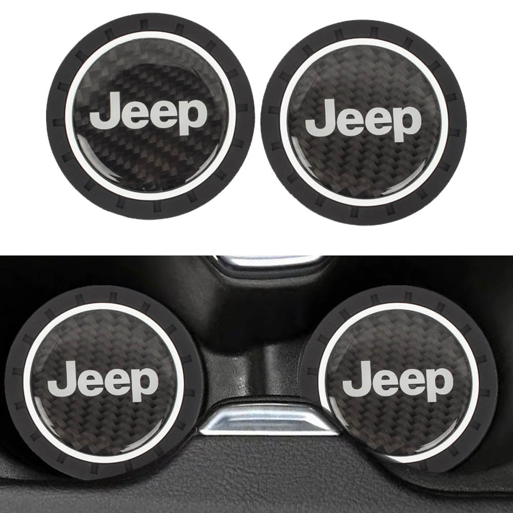 Brand New 2PCS JEEP Real Carbon Fiber Car Cup Holder Pad Water Cup Slot Non-Slip Mat Universal