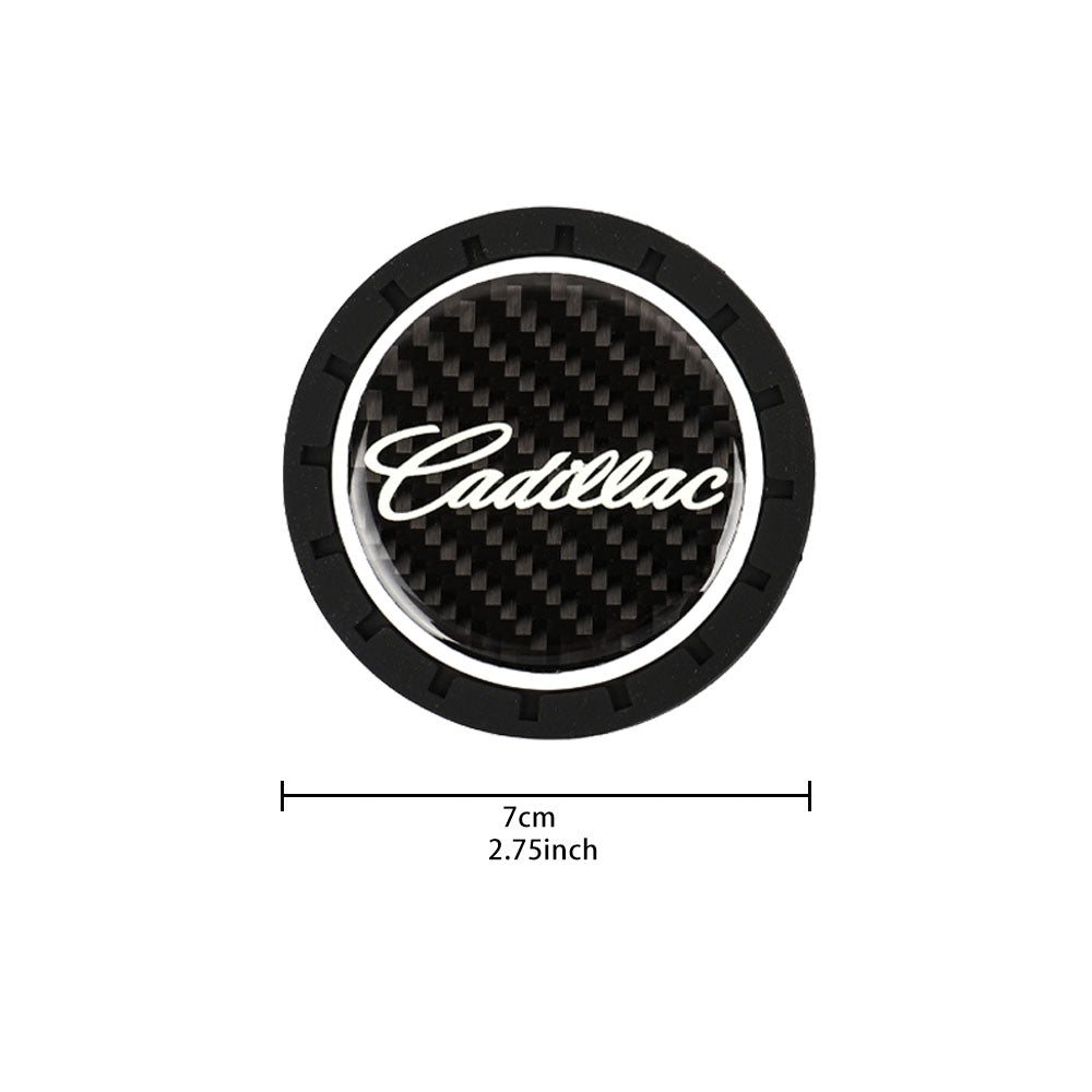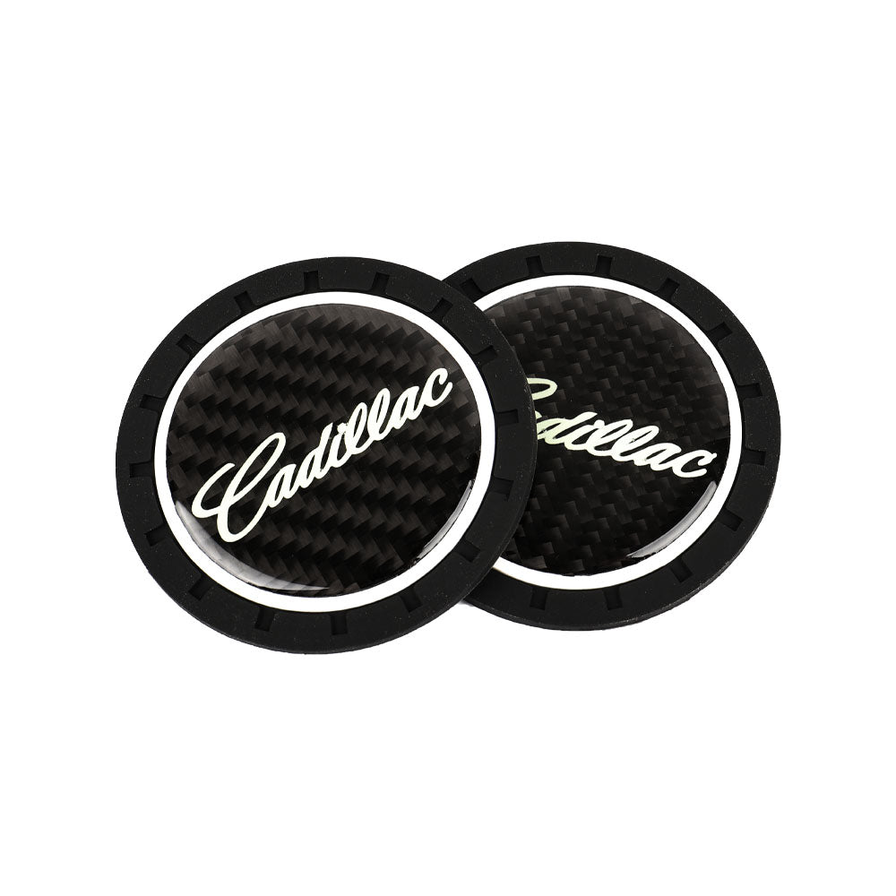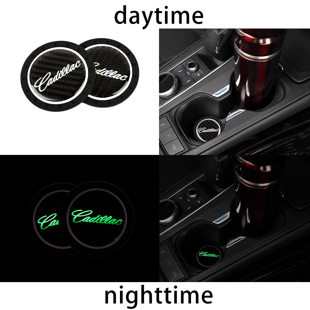 Brand New 2PCS CADILLAC Glows In The Dark Green Real Carbon Fiber Car Cup Holder Pad Water Cup Slot Non-Slip Mat Universal