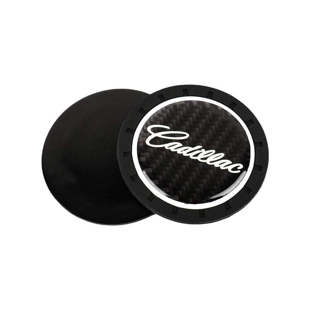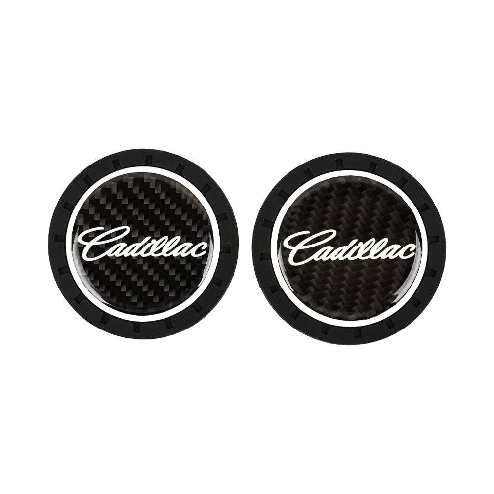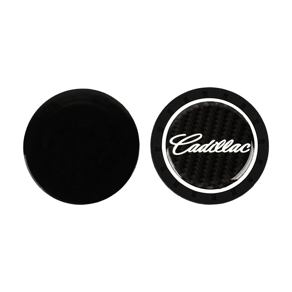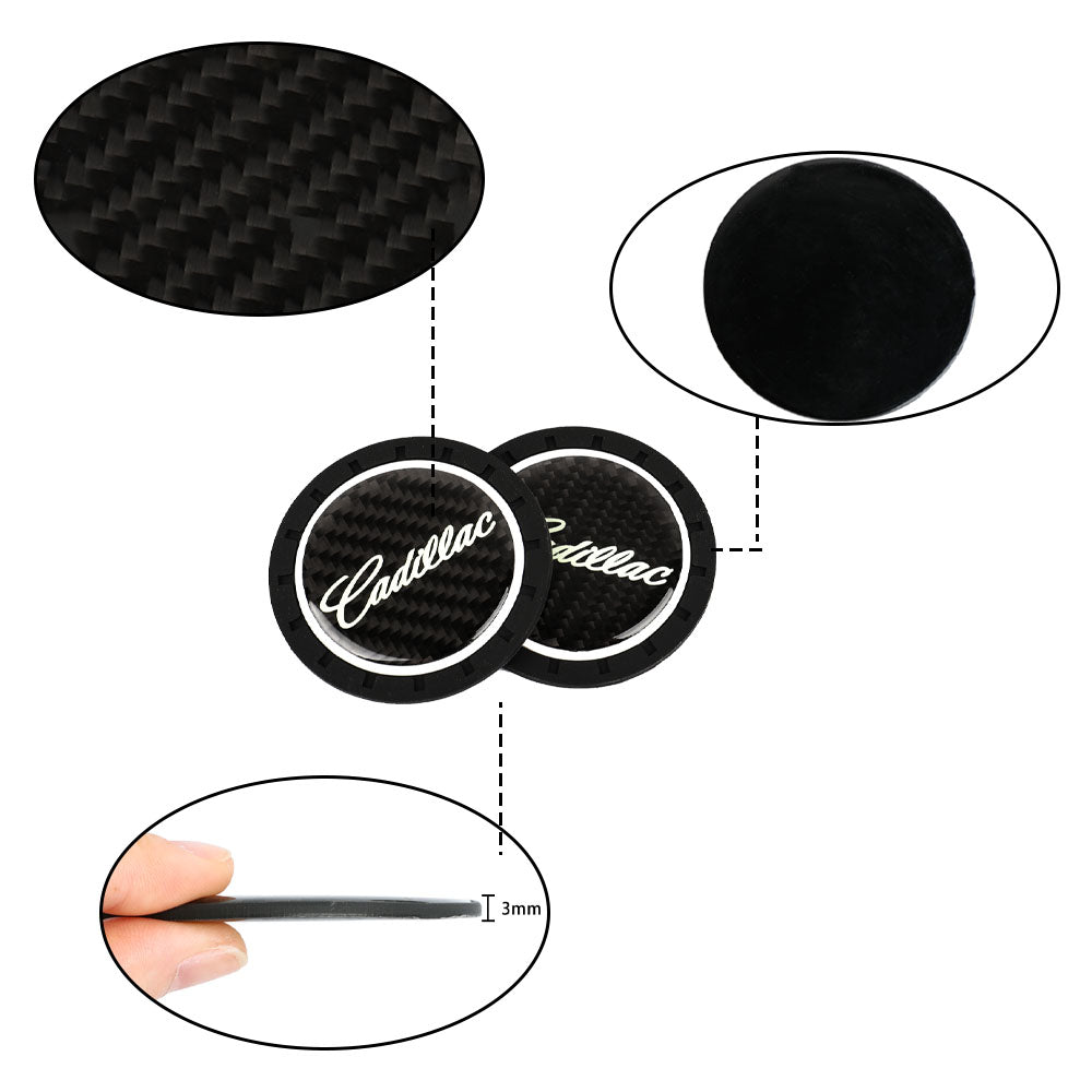 Brand New 2PCS CADILLAC Glows In The Dark Green Real Carbon Fiber Car Cup Holder Pad Water Cup Slot Non-Slip Mat Universal