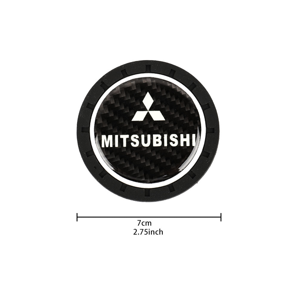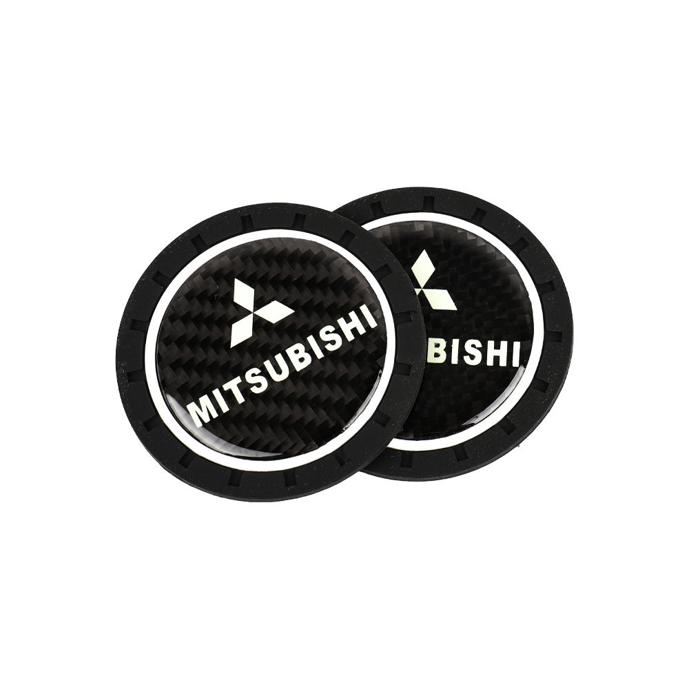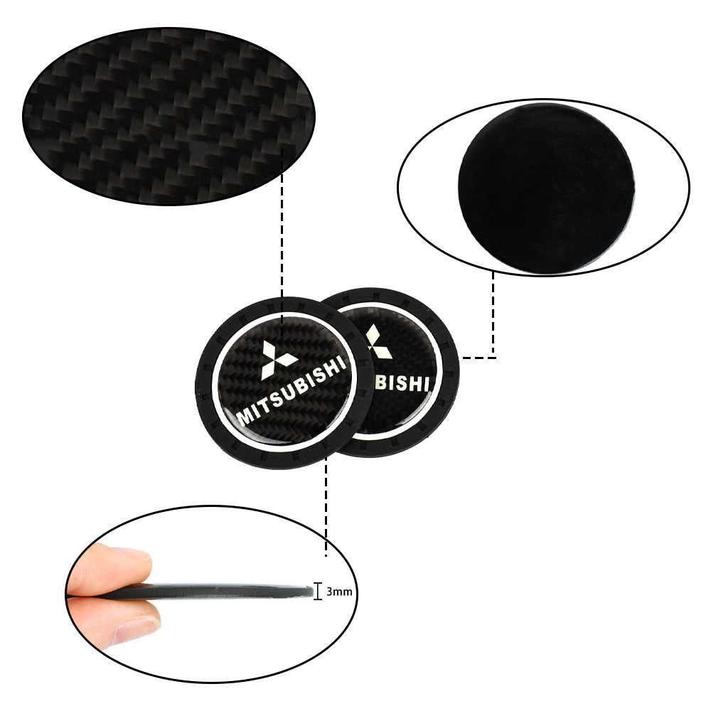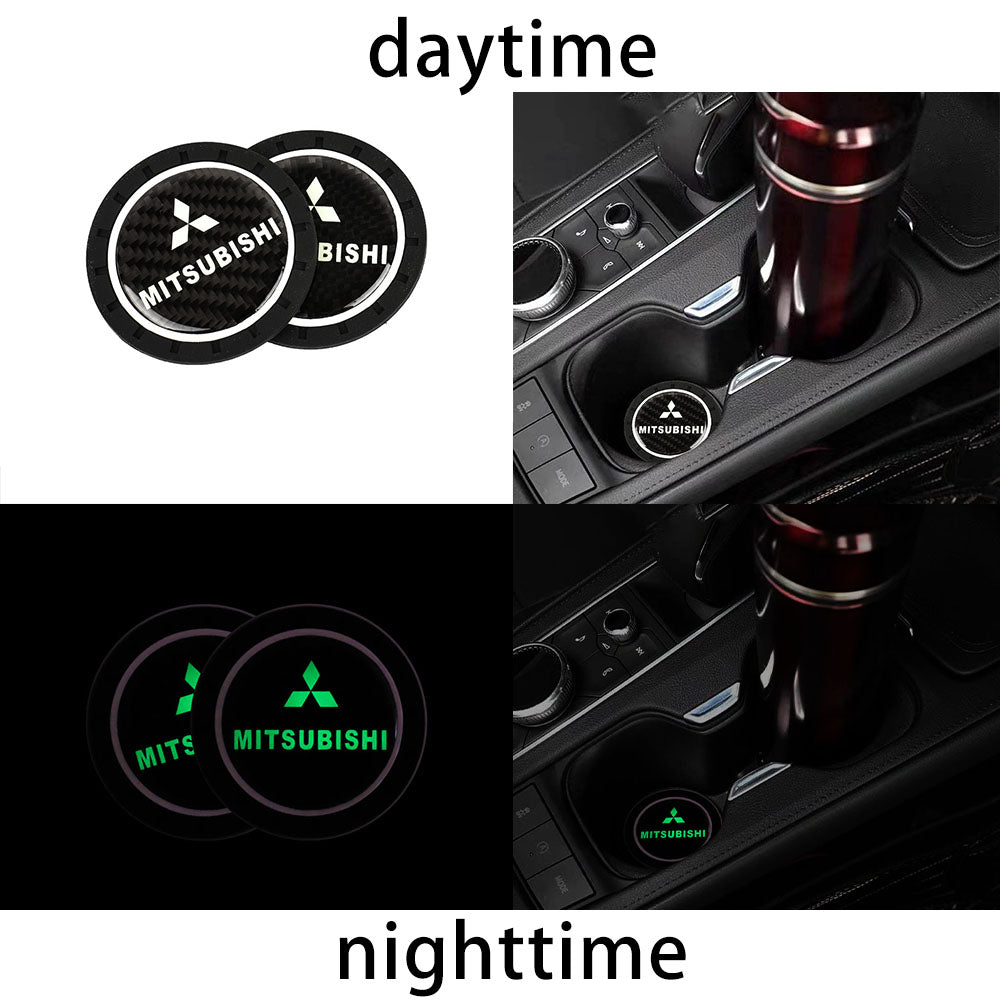 Brand New 2PCS Mitsubishi Glows In The Dark Green Real Carbon Fiber Car Cup Holder Pad Water Cup Slot Non-Slip Mat Universal