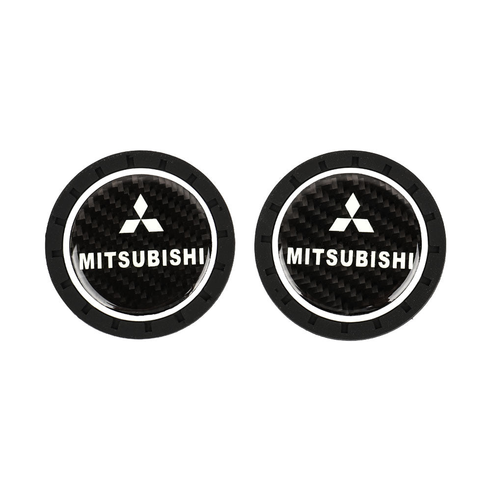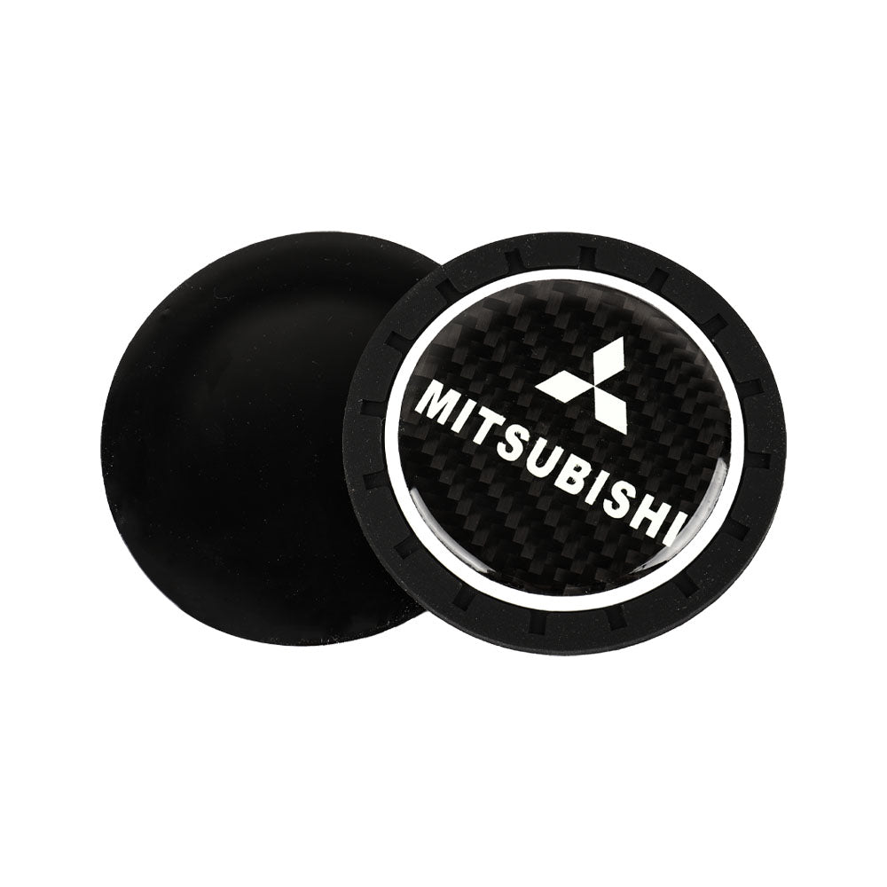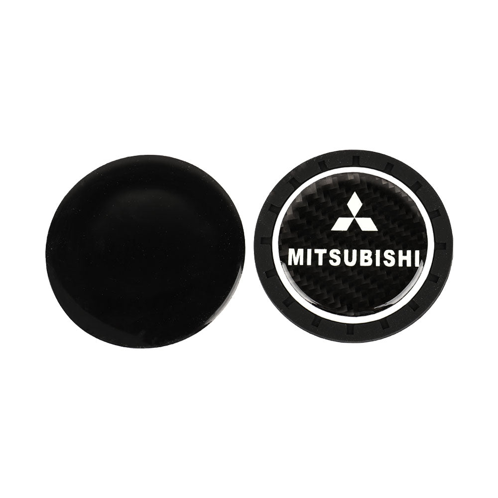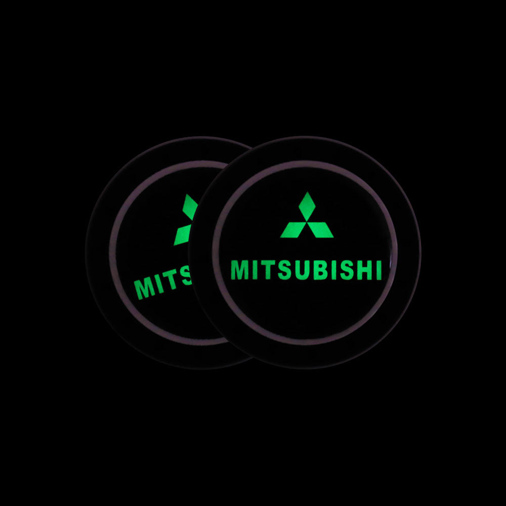 Brand New 2PCS Mitsubishi Glows In The Dark Green Real Carbon Fiber Car Cup Holder Pad Water Cup Slot Non-Slip Mat Universal