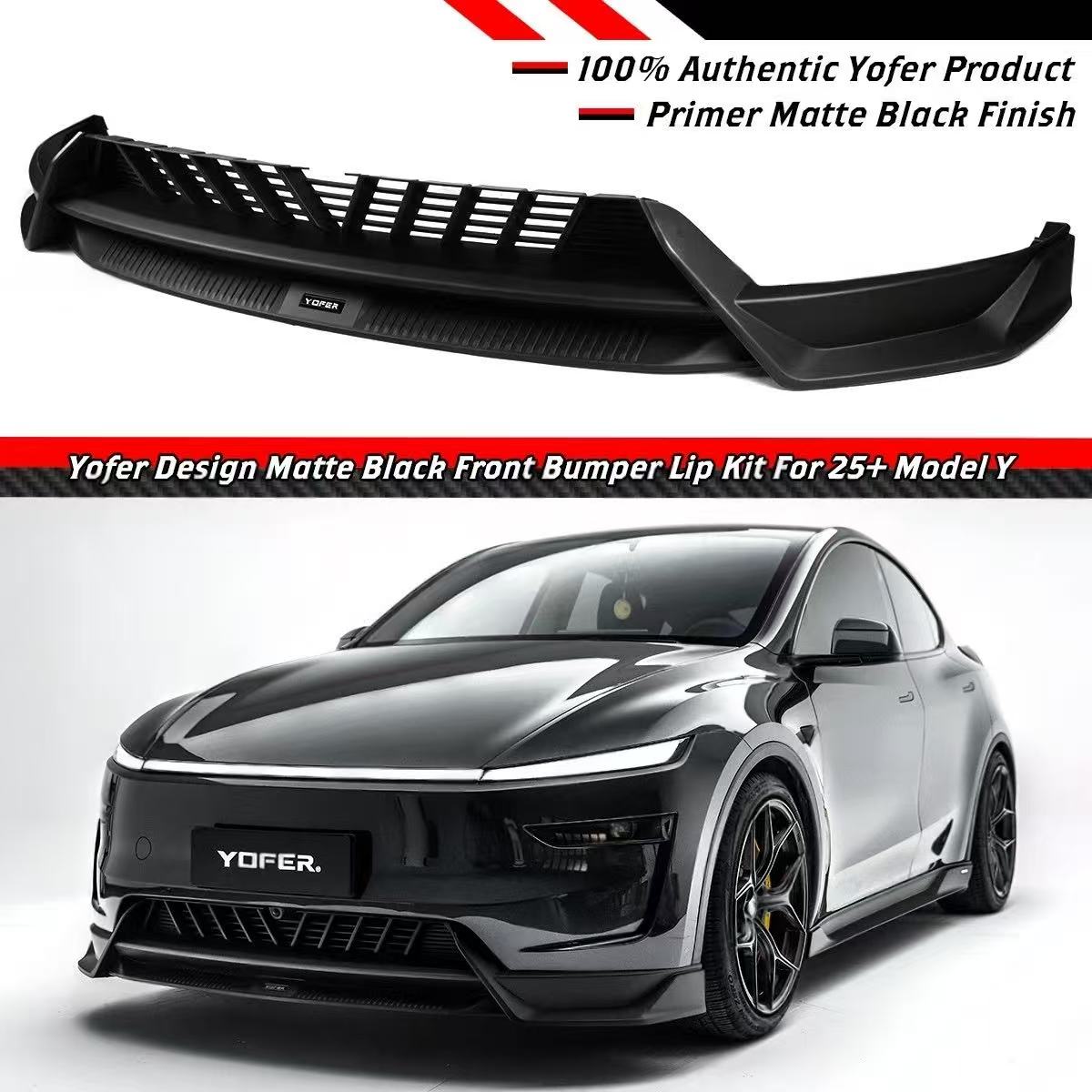 Yofer Design 3 Pieces Front Bumper Lip Splitters Kit (2 Pieces Side Splitters + 1 Piece Middle Lip With Integrated Lower Mesh Grill) For The New Model Y Juniper.