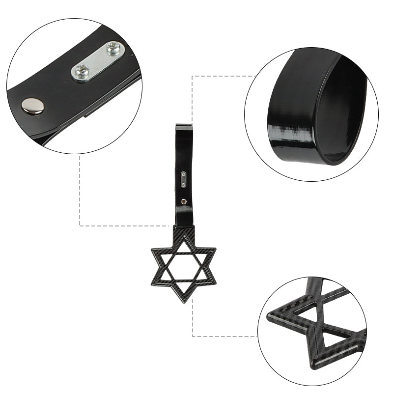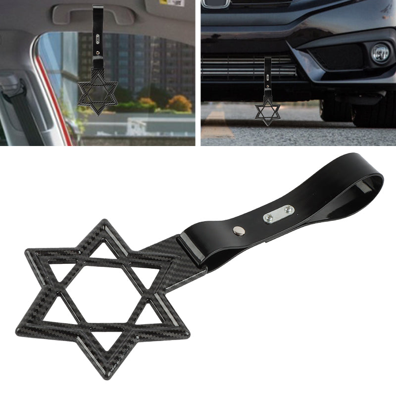 Brand New Hexagram Shaped Carbon Fiber JDM TSURIKAWA Subway Bus Black Handle Strap Charm Drift