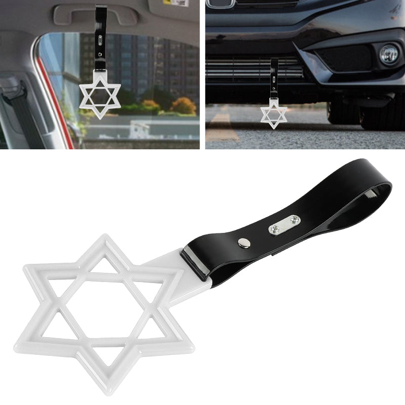 Brand New Hexagram Shaped White JDM TSURIKAWA Subway Bus Black Handle Strap Charm Drift