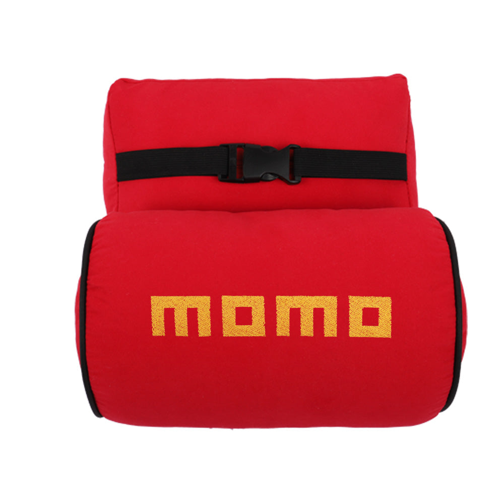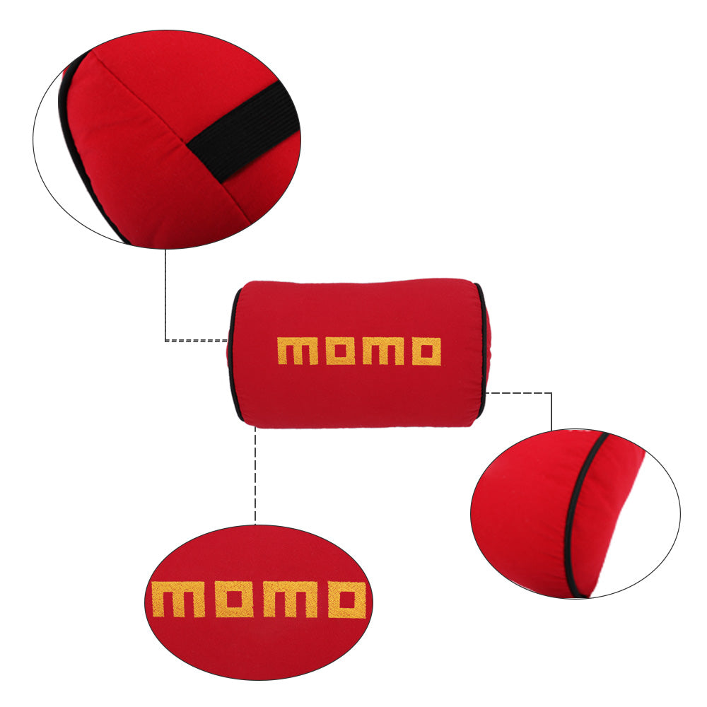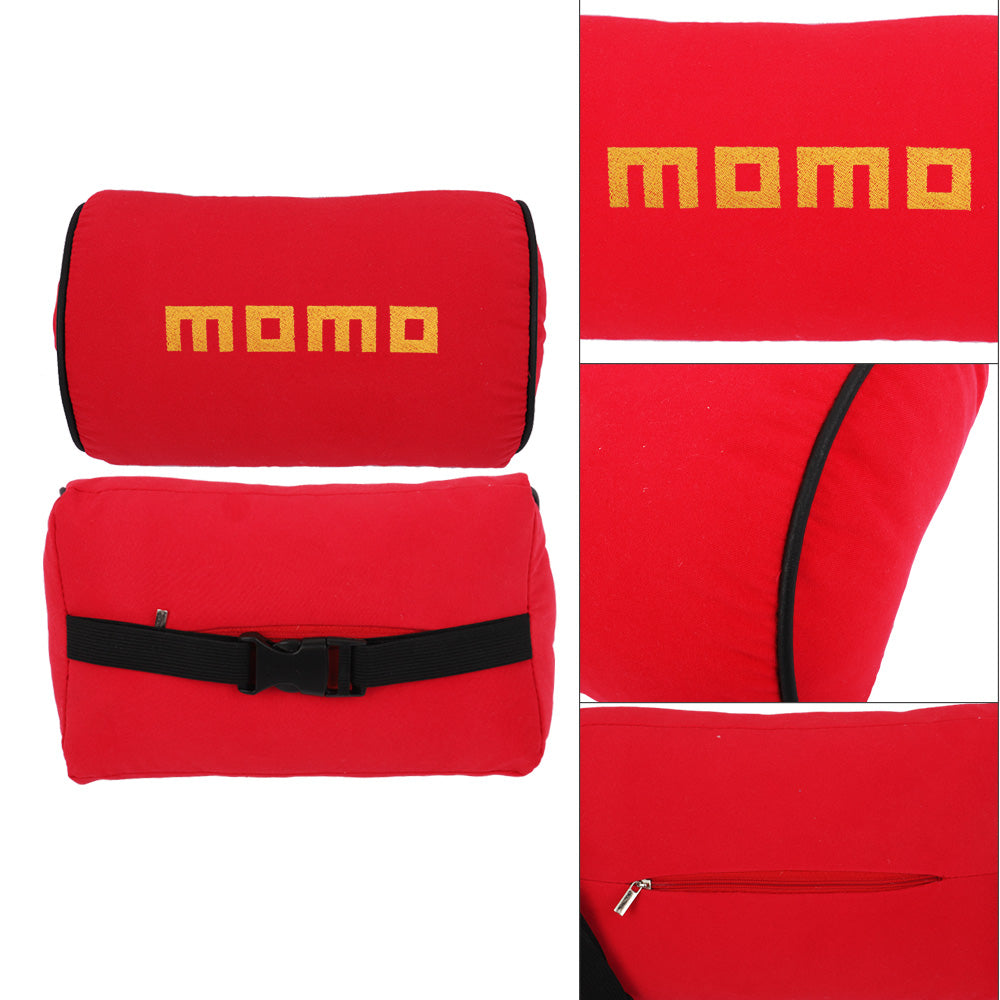 Brand New 2PCS JDM Momo Red Fabric Material Car Neck Headrest Pillow Fabric Racing Seat