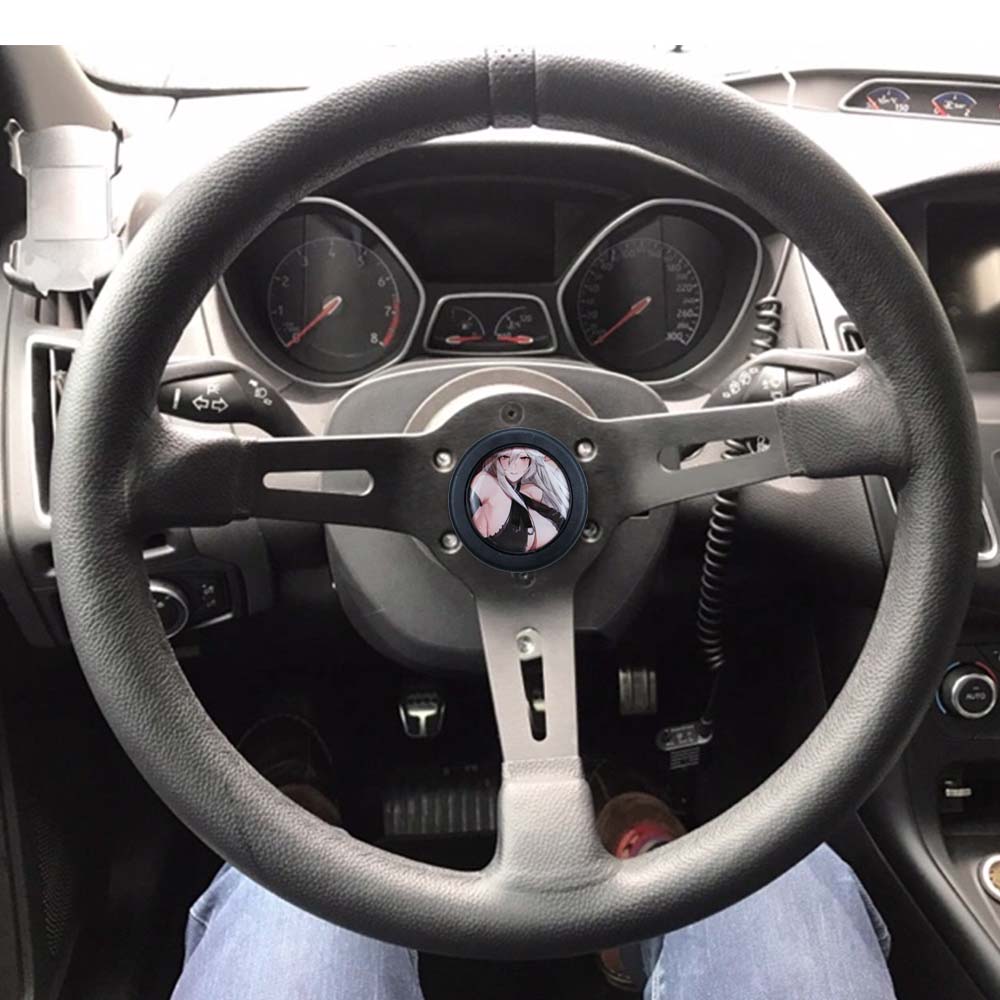 Brand New Universal Anime Hentai Car Horn Button Black Steering Wheel Center Cap