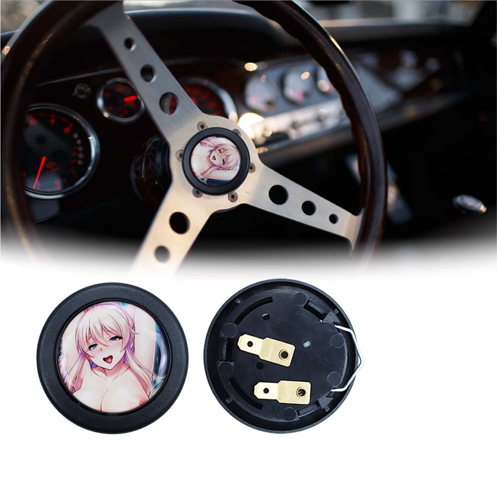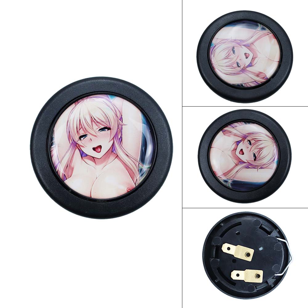 Brand New Universal Anime Hentai Car Horn Button Black Steering Wheel Center Cap