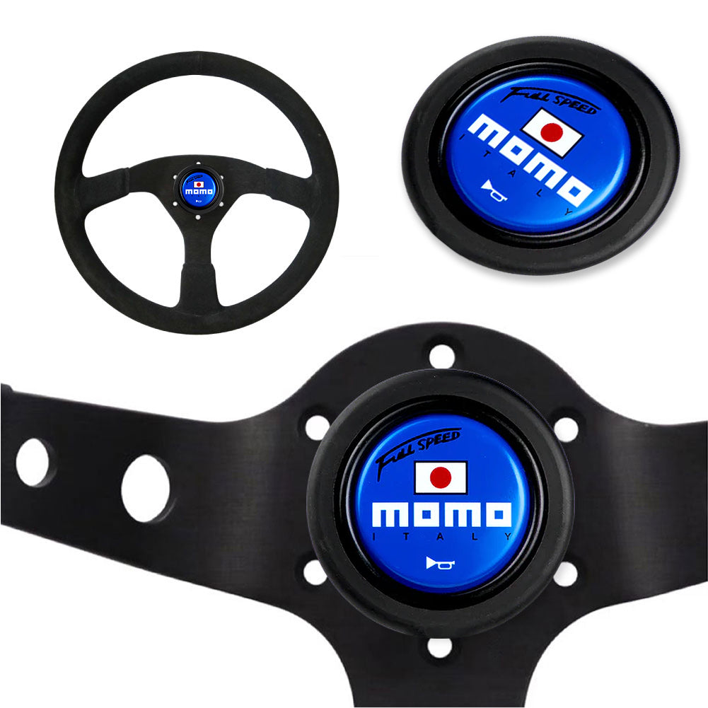 Brand New Universal Momo Car Horn Button Black Steering Wheel Center Cap W/Packaging