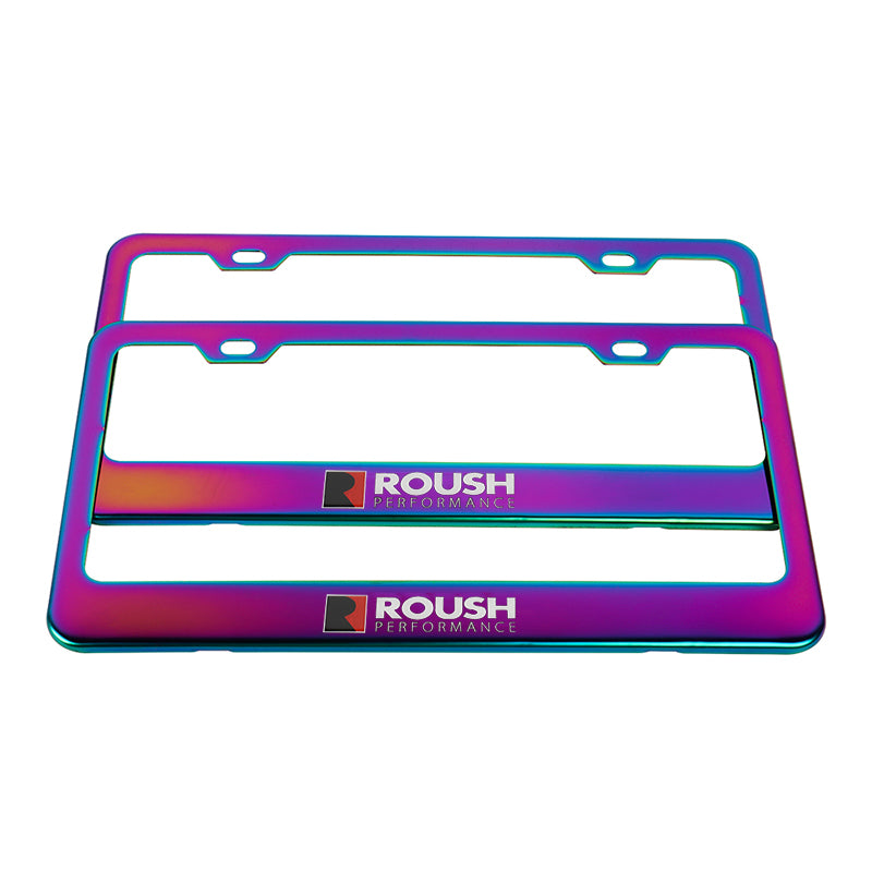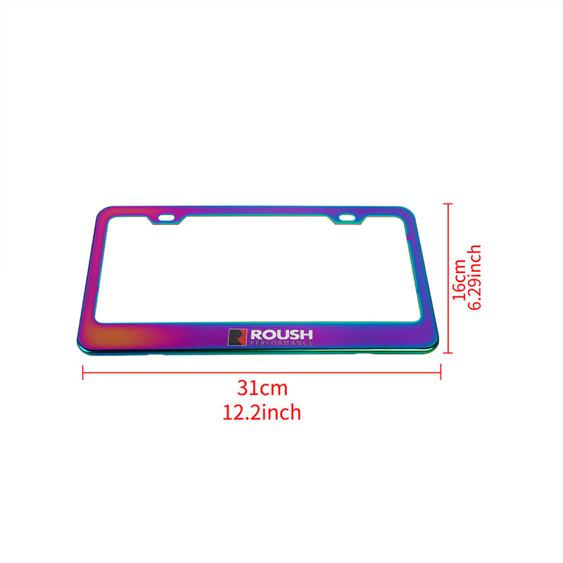 Brand New 2PCS Roush Performance Neo Chrome Stainless Steel License Plate Frame W/ Screw Caps