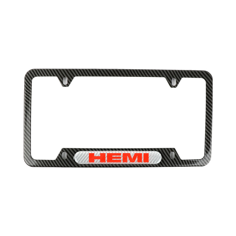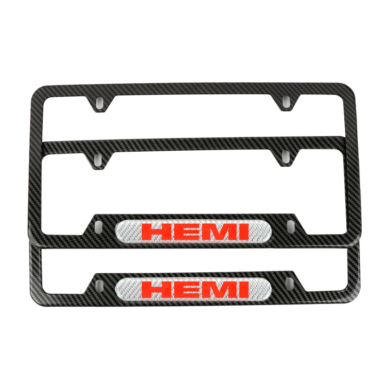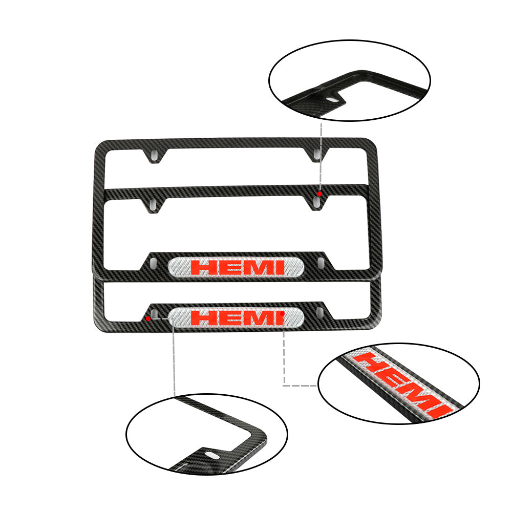 Brand New Universal 2PCS HEMI Carbon Fiber Look Metal License Plate Frame