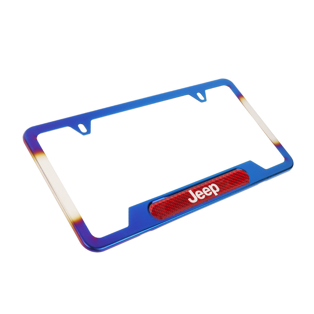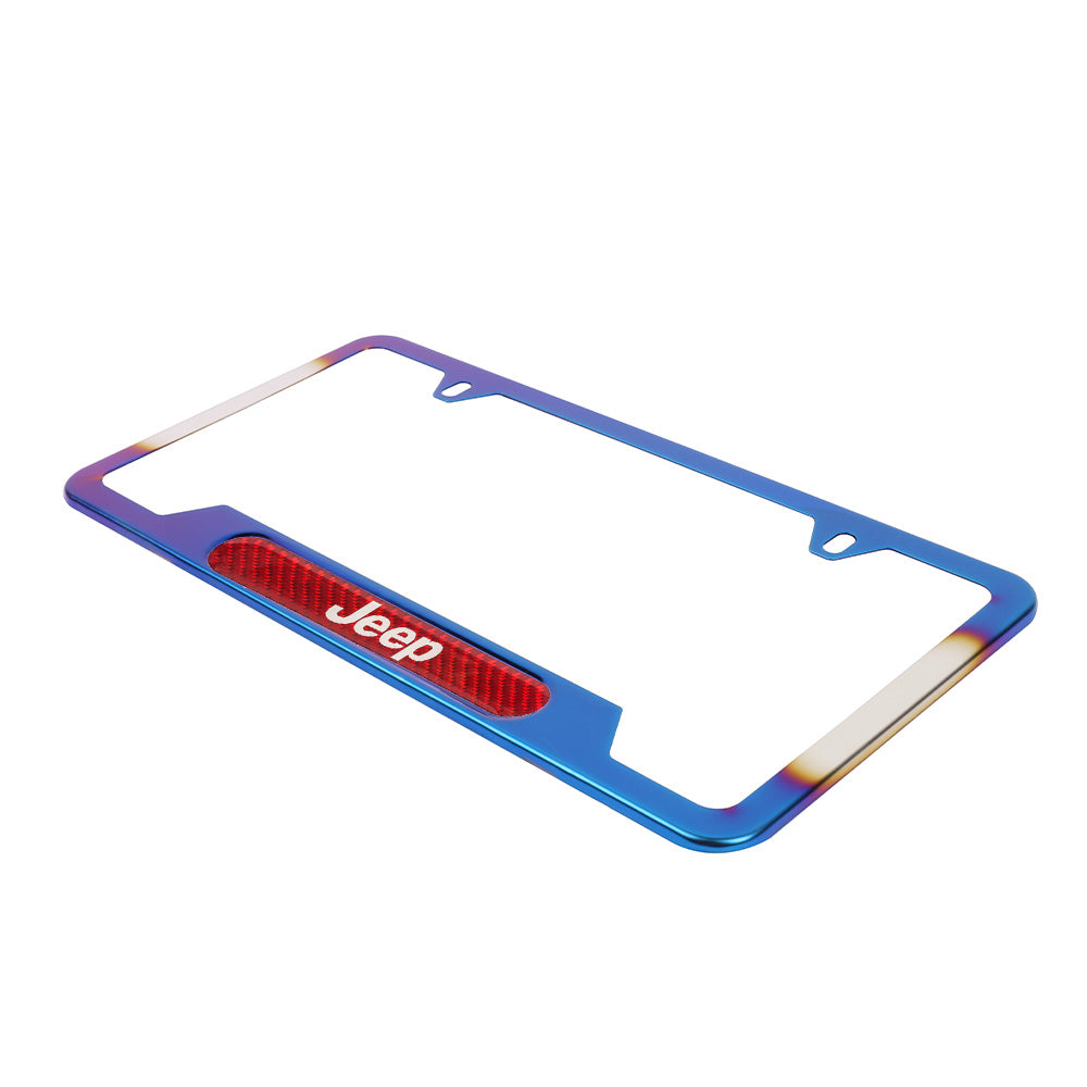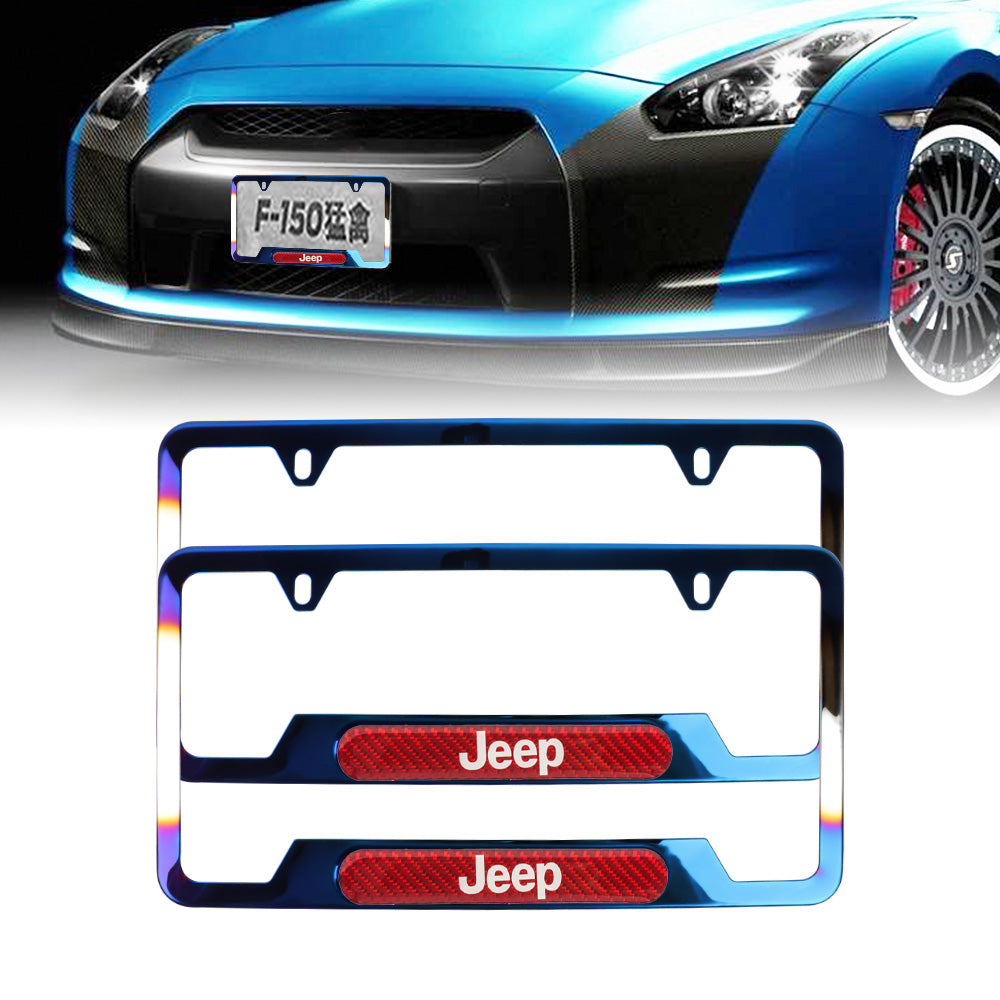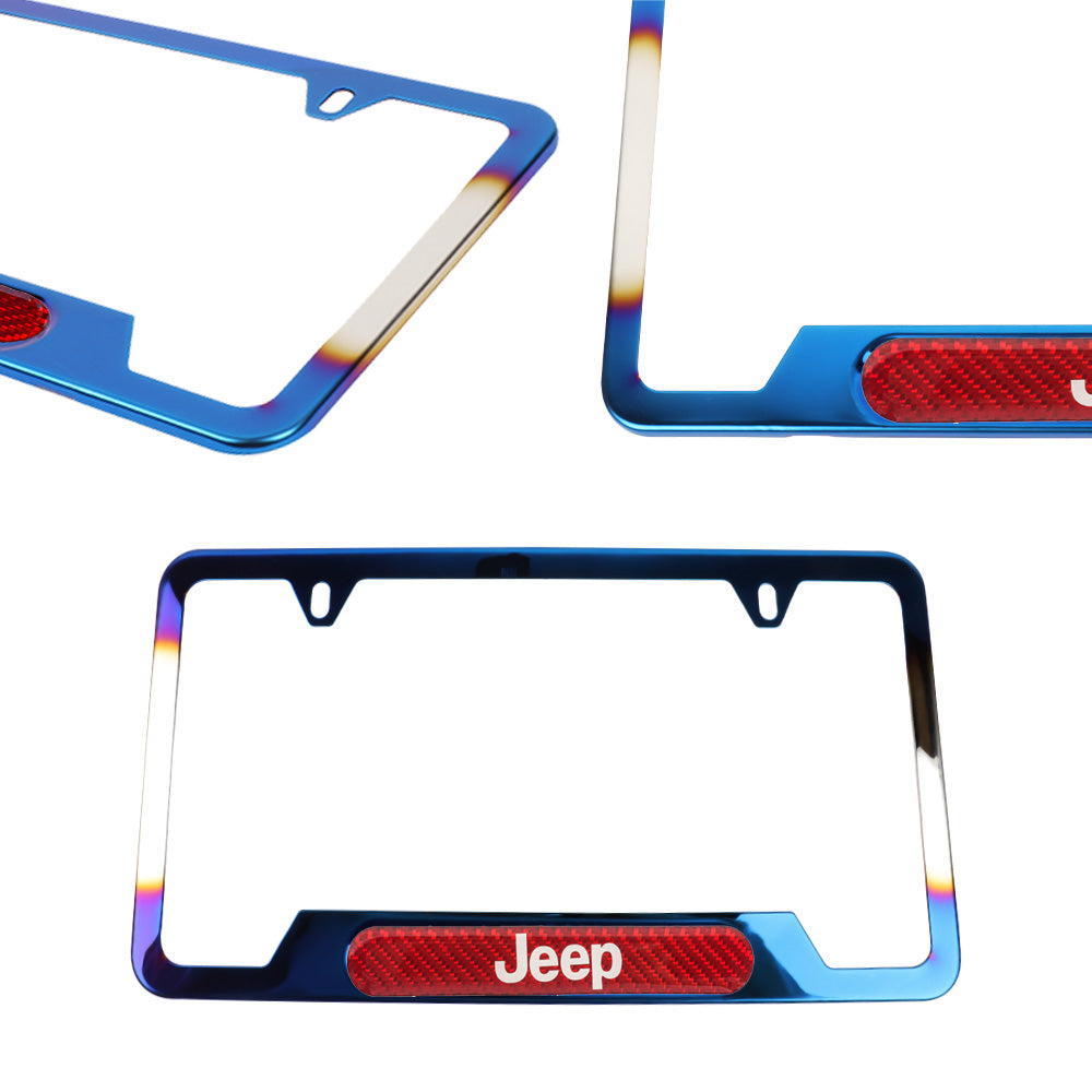 Brand New Universal 2PCS JEEP Titanium Burnt Blue Metal License Plate Frame