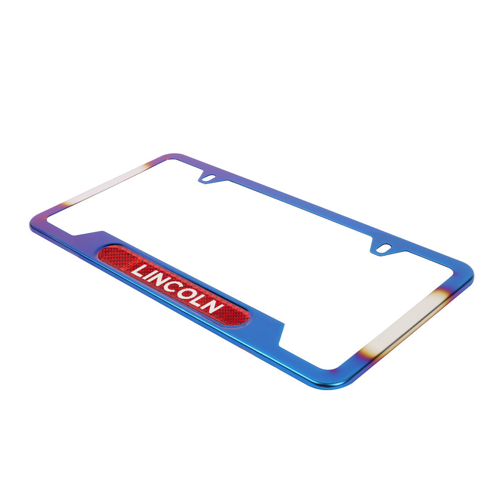 Brand New Universal 2PCS LINCOLN Titanium Burnt Blue Metal License Plate Frame