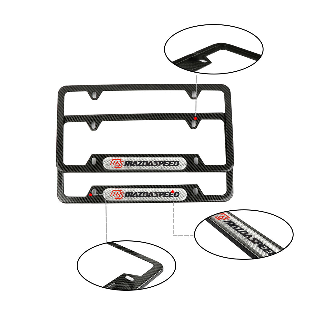 Brand New Universal 2PCS MAZDASPEED Carbon Fiber Look Metal License Plate Frame