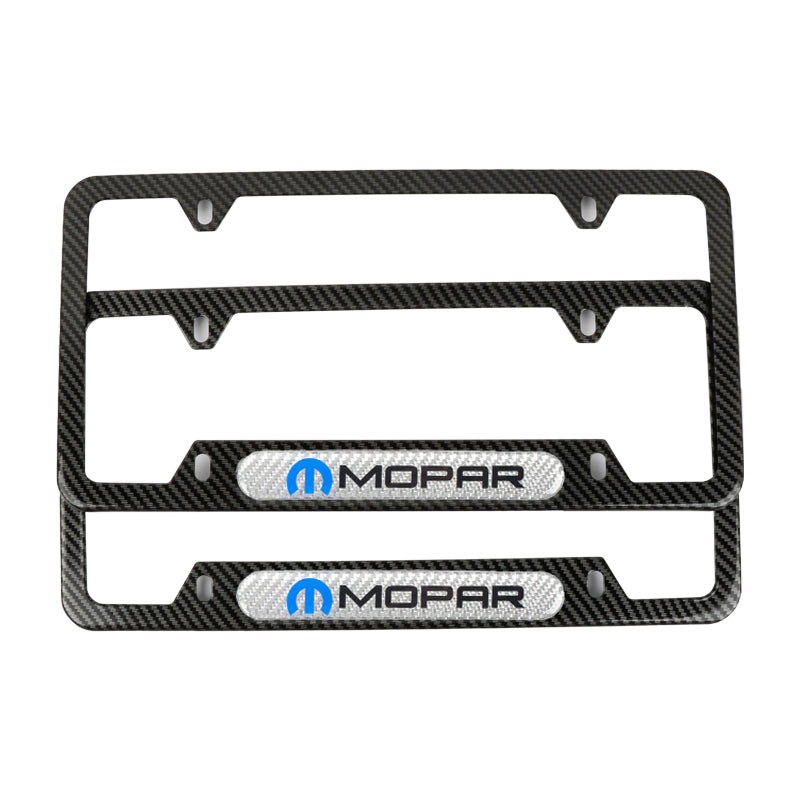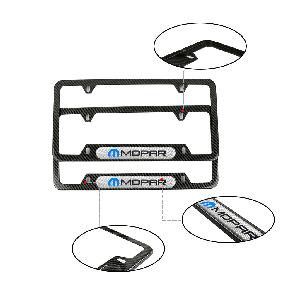 Brand New Universal 2PCS MOPAR Carbon Fiber Look Metal License Plate Frame