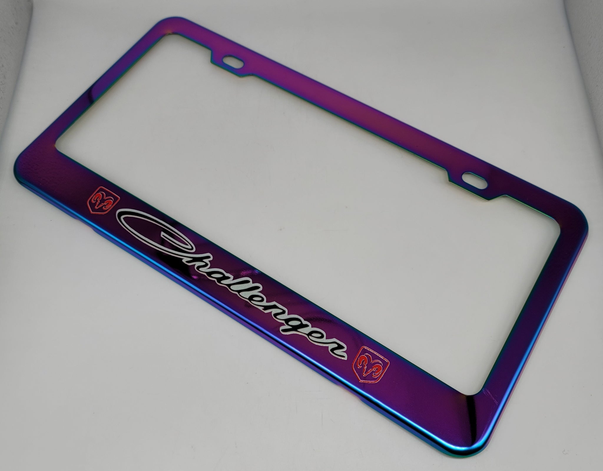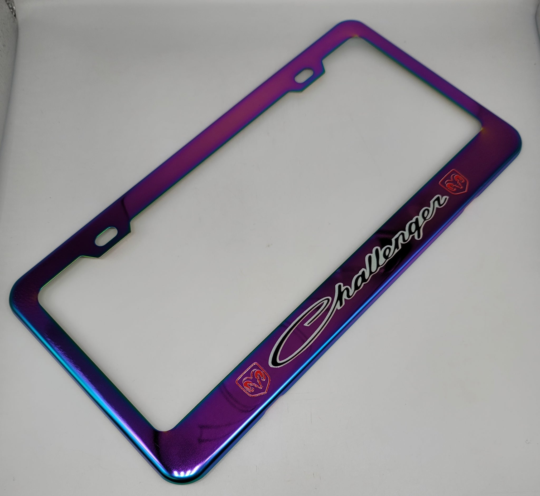 Brand New Universal 1PCS DODGE CHALLENGER Neo Chrome Titanium Metal Steel License Plate Frame
