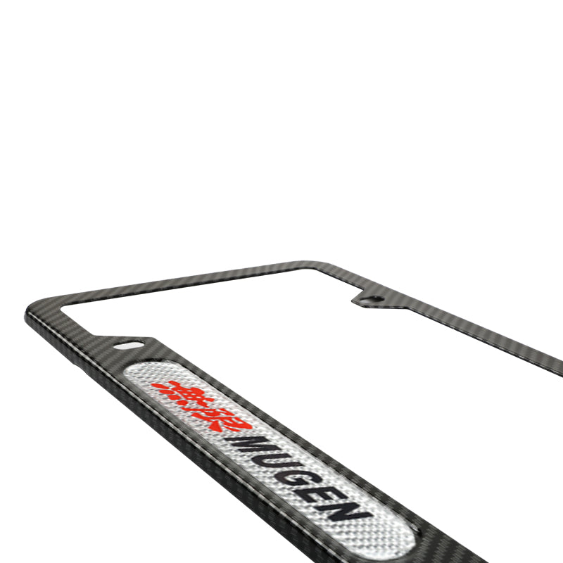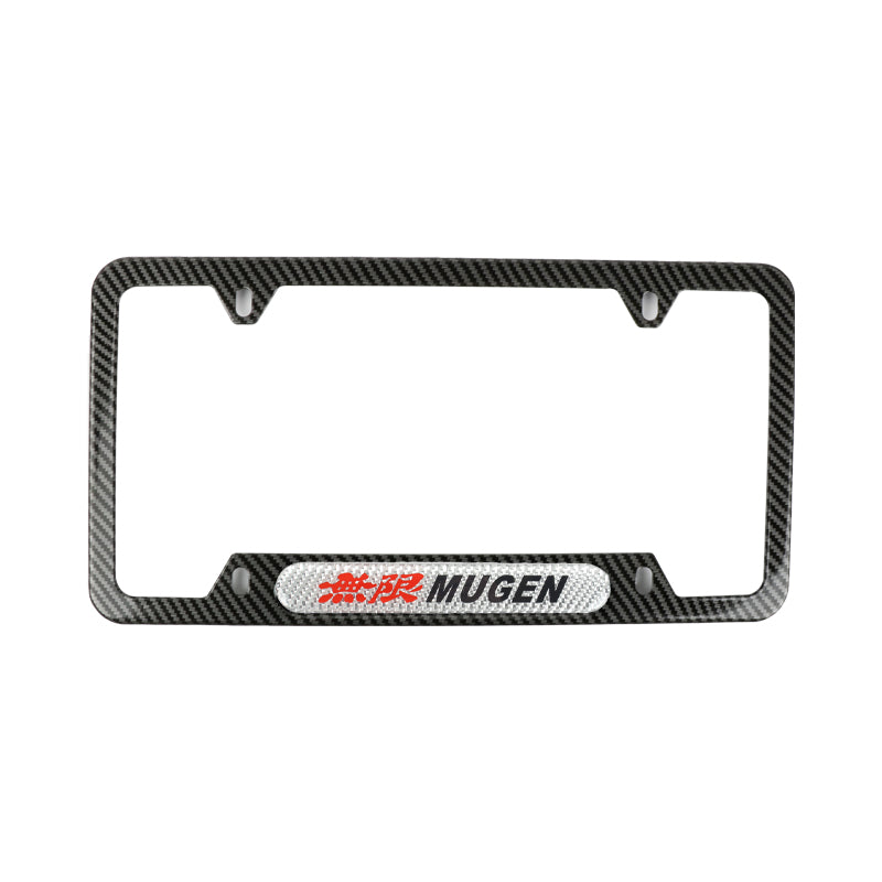 Brand New Universal 2PCS MUGEN Carbon Fiber Look Metal License Plate Frame