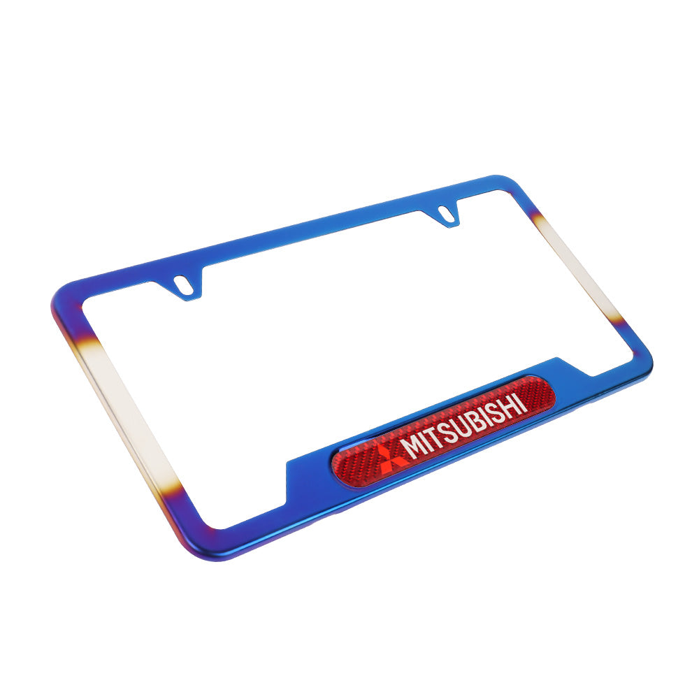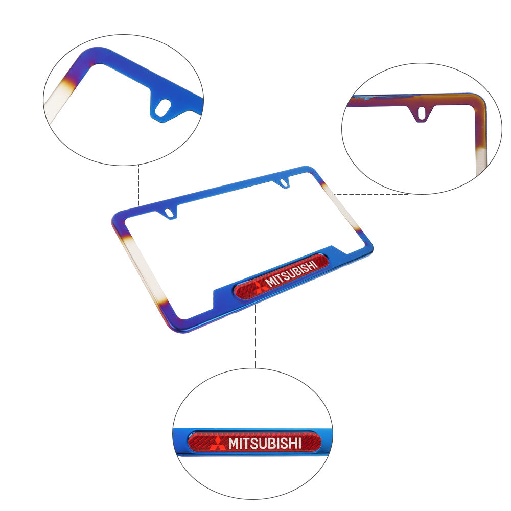 Brand New Universal 1PCS MITSUBISHI Titanium Burnt Blue Metal License Plate Frame
