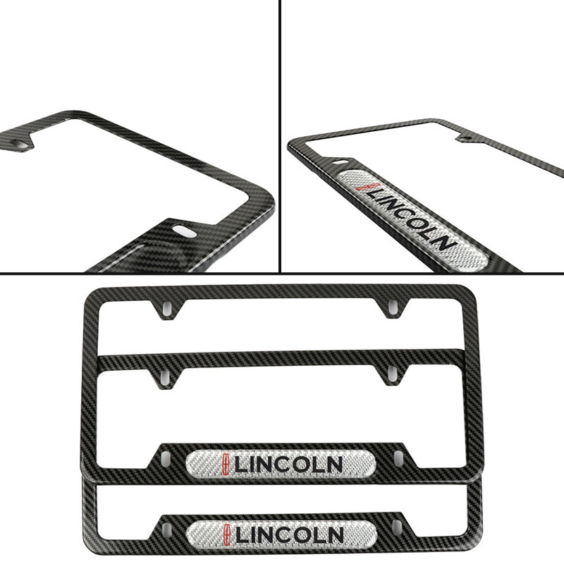 Brand New Universal 2PCS Lincoln Carbon Fiber Look Metal License Plate Frame