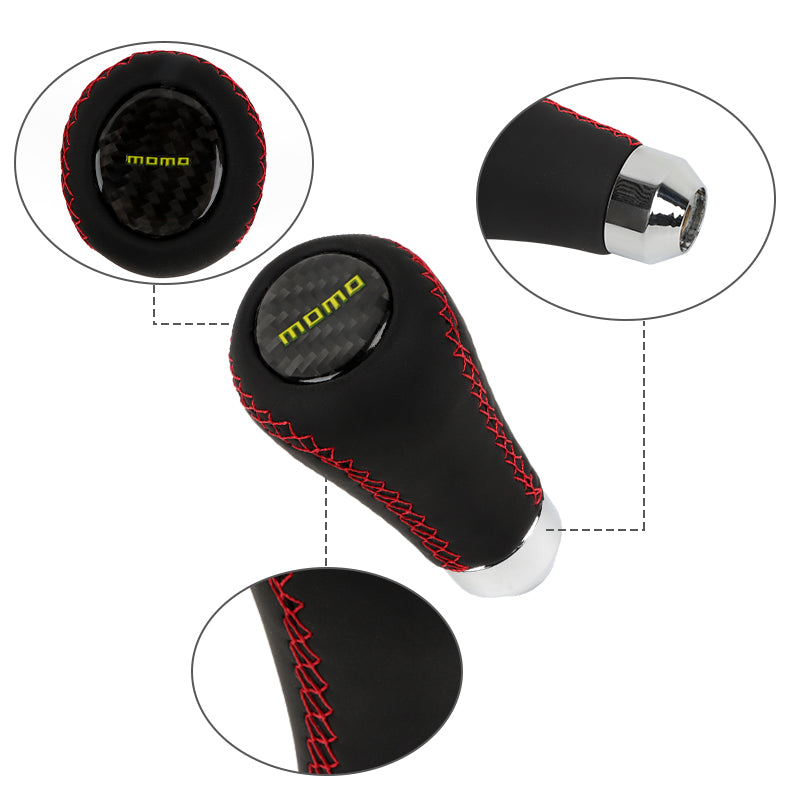 Brand New Universal Momo Red Stitches Black Leather Manual Car Gear Shift Knob Shifter Lever M8 M10 M12