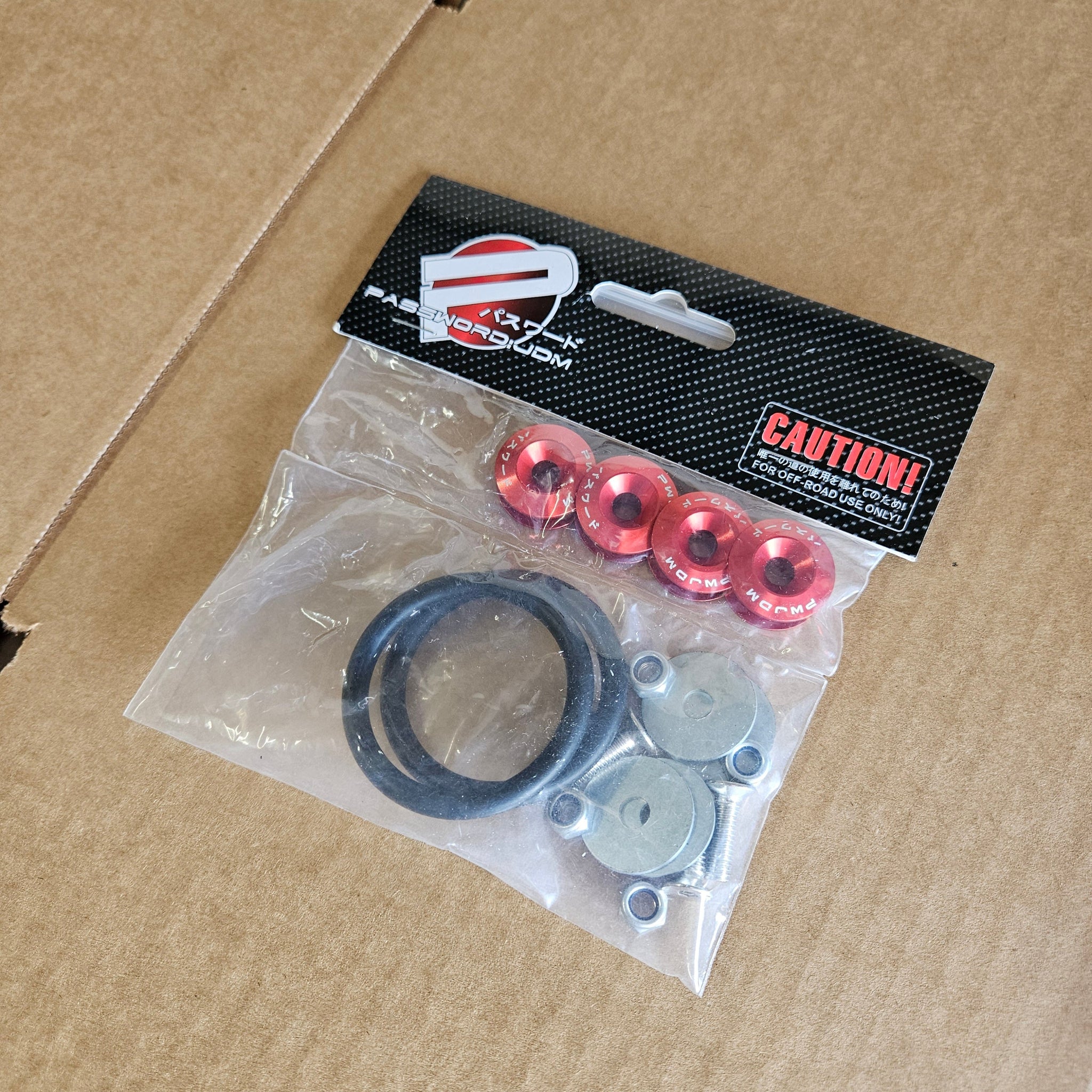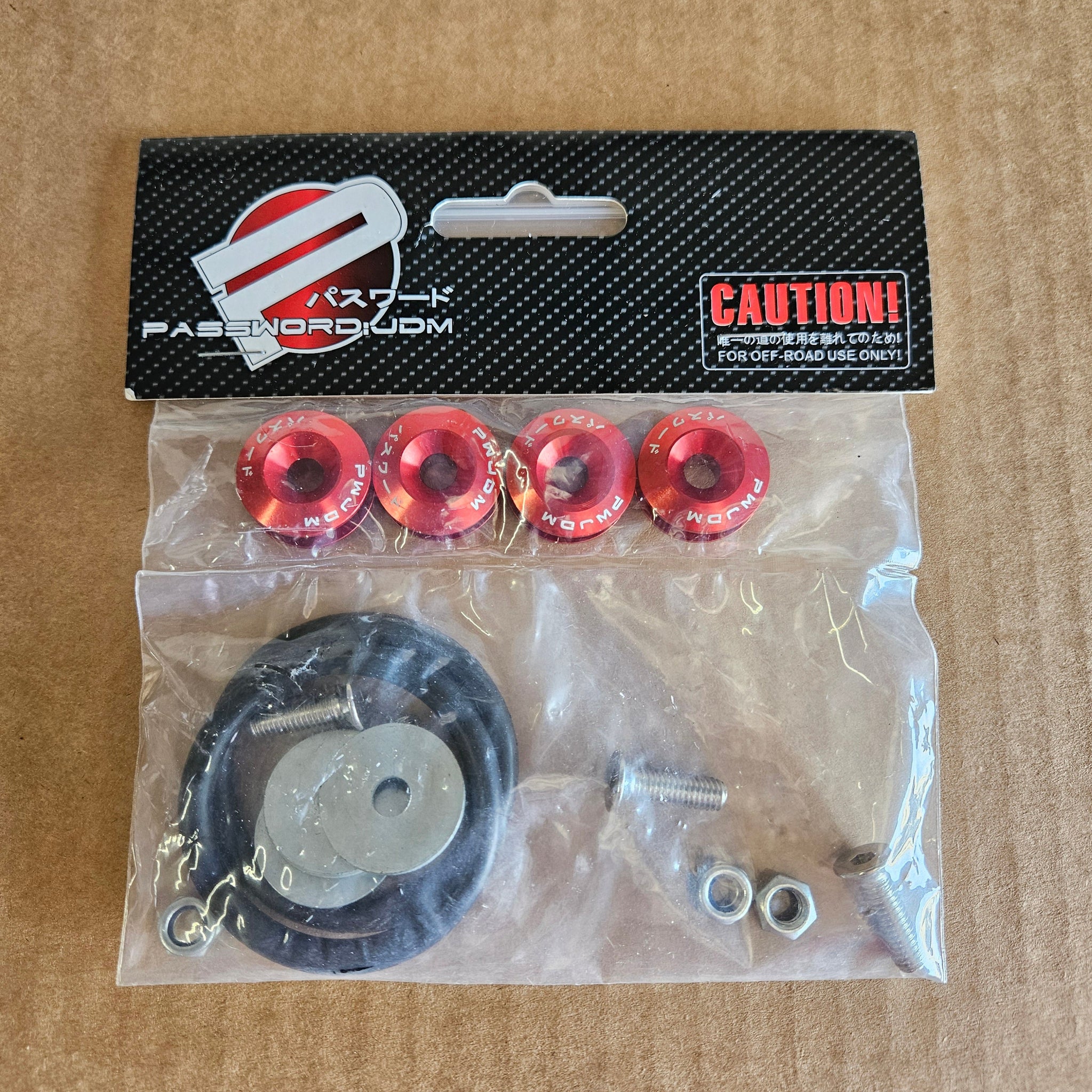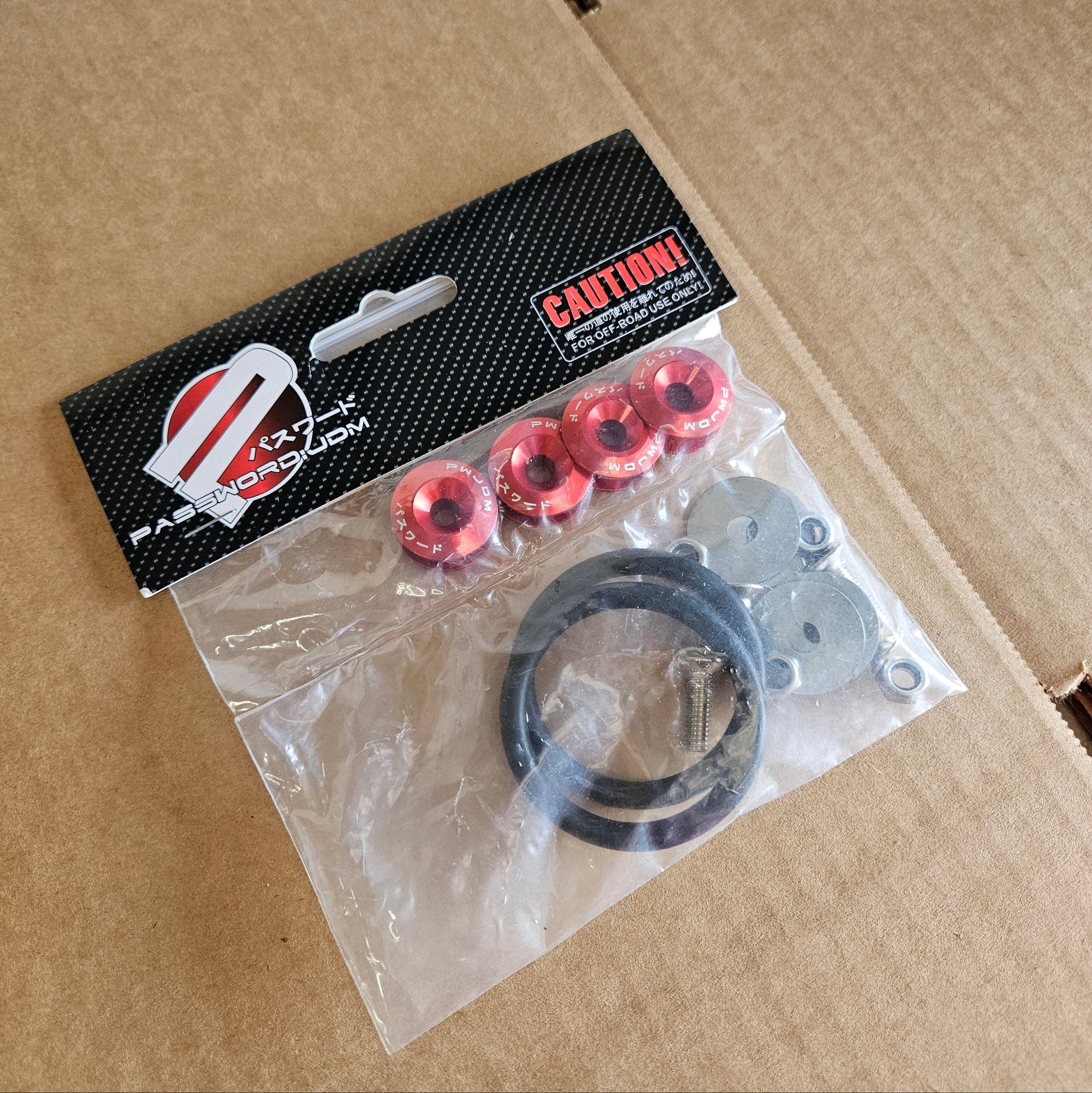 These Password JDM Quick Release Kits Are ideal For Front Bumpers, Rear Bumpers, And Trunk/Hatch Lids, That You Need To Remove Frequently, or Remove and Reinstall Quickly, Such as on a Track day or out on a Drift Session.