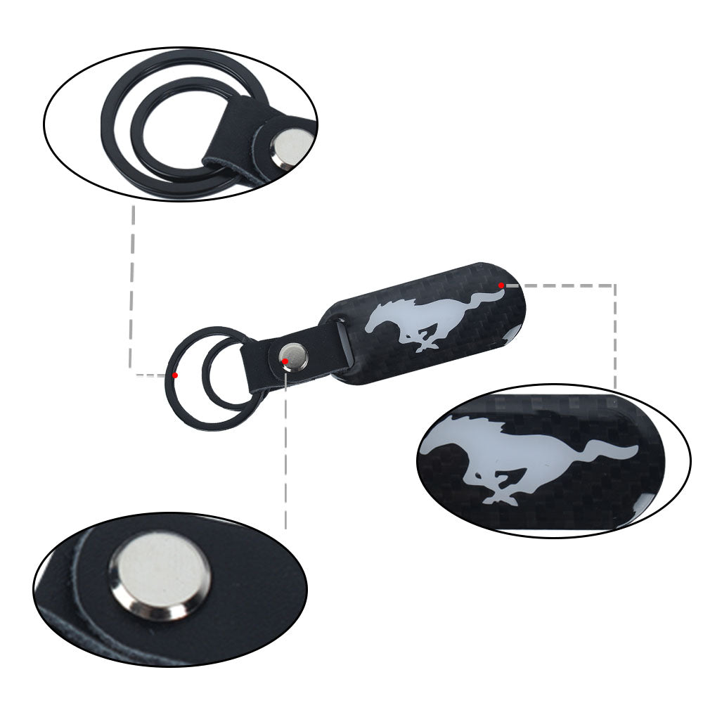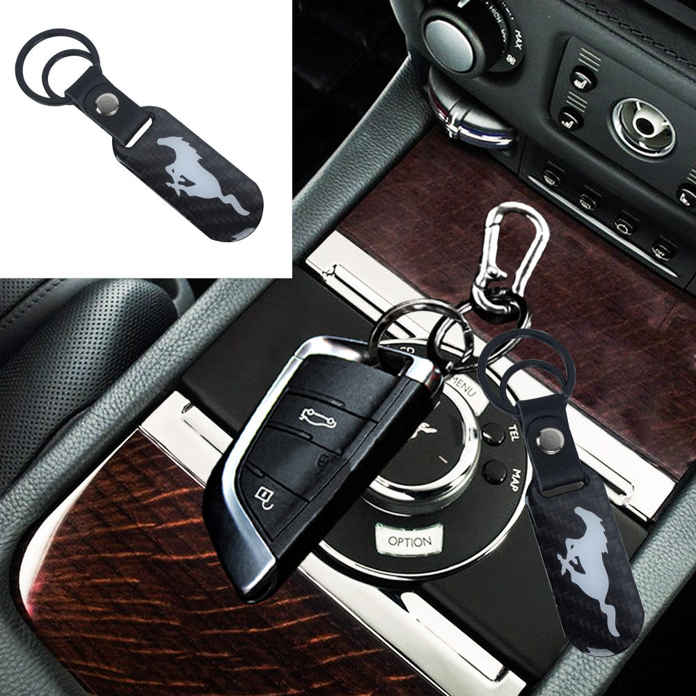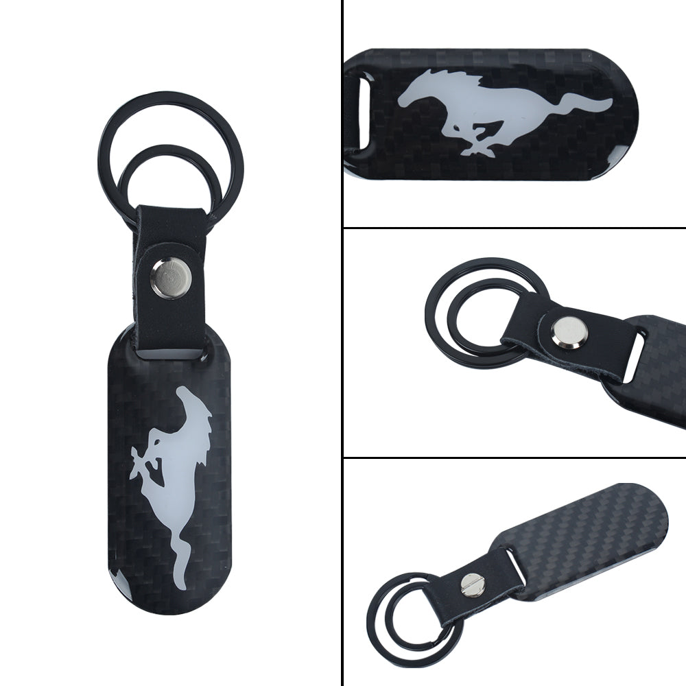 Brand New Universal 100% Real Carbon Fiber Keychain Key Ring For Mustang