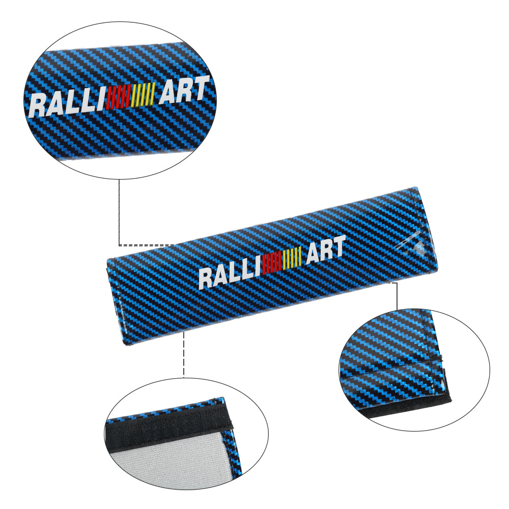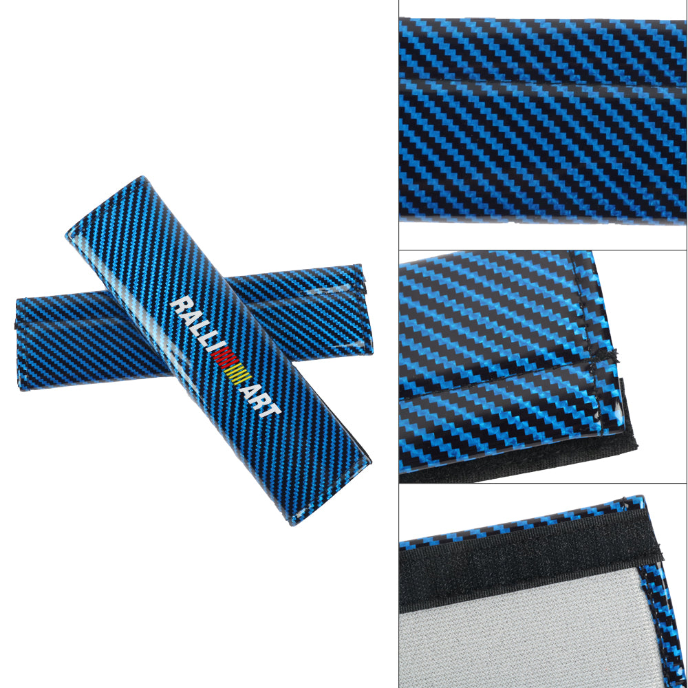 Brand New Universal 2PCS Ralliart Blue Carbon Fiber Look Car Seat Belt Covers Shoulder Pad