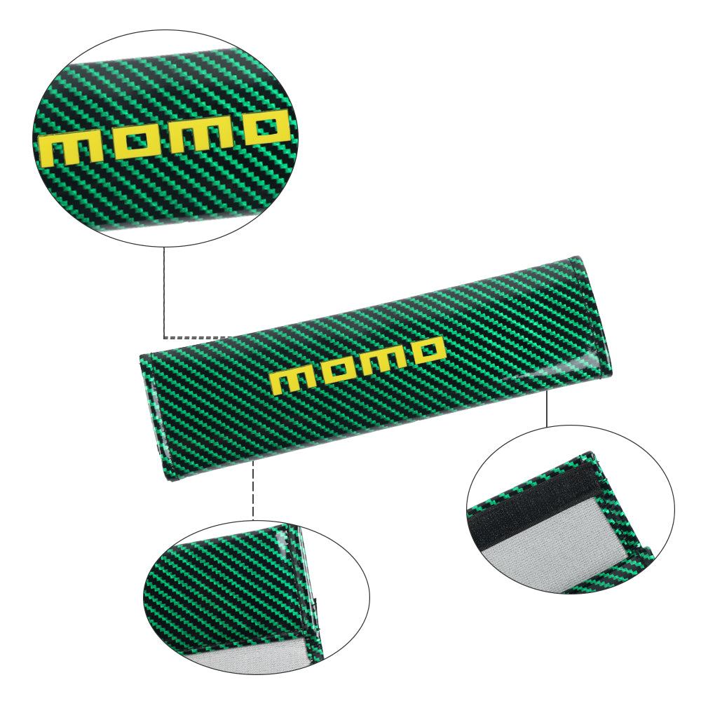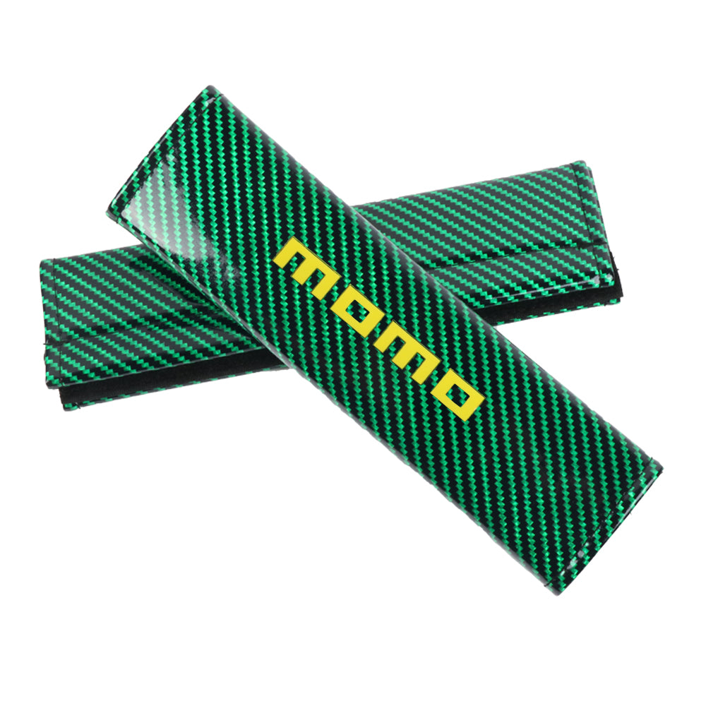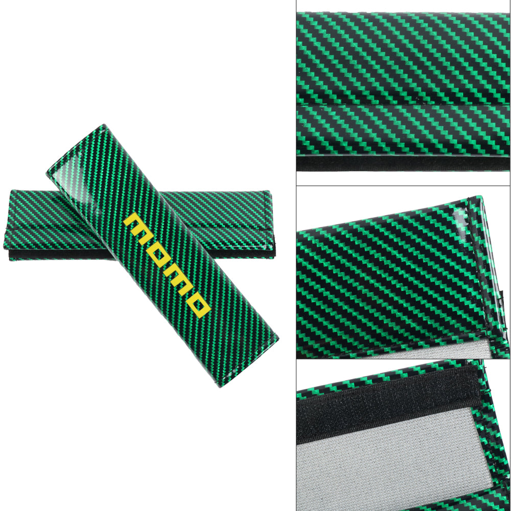 Brand New Universal 2PCS Momo Green Carbon Fiber Look Car Seat Belt Covers Shoulder Pad