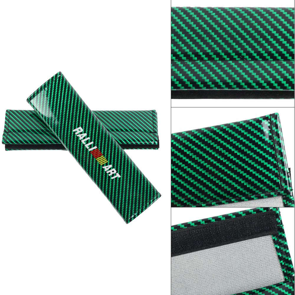 Brand New Universal 2PCS Ralliart Green Carbon Fiber Look Car Seat Belt Covers Shoulder Pad