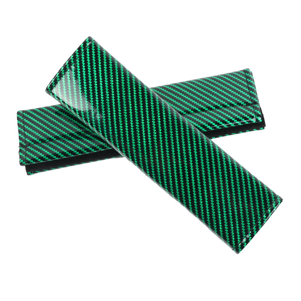 Brand New Universal 2PCS Green Carbon Fiber Look Car Seat Belt Covers Shoulder Pad