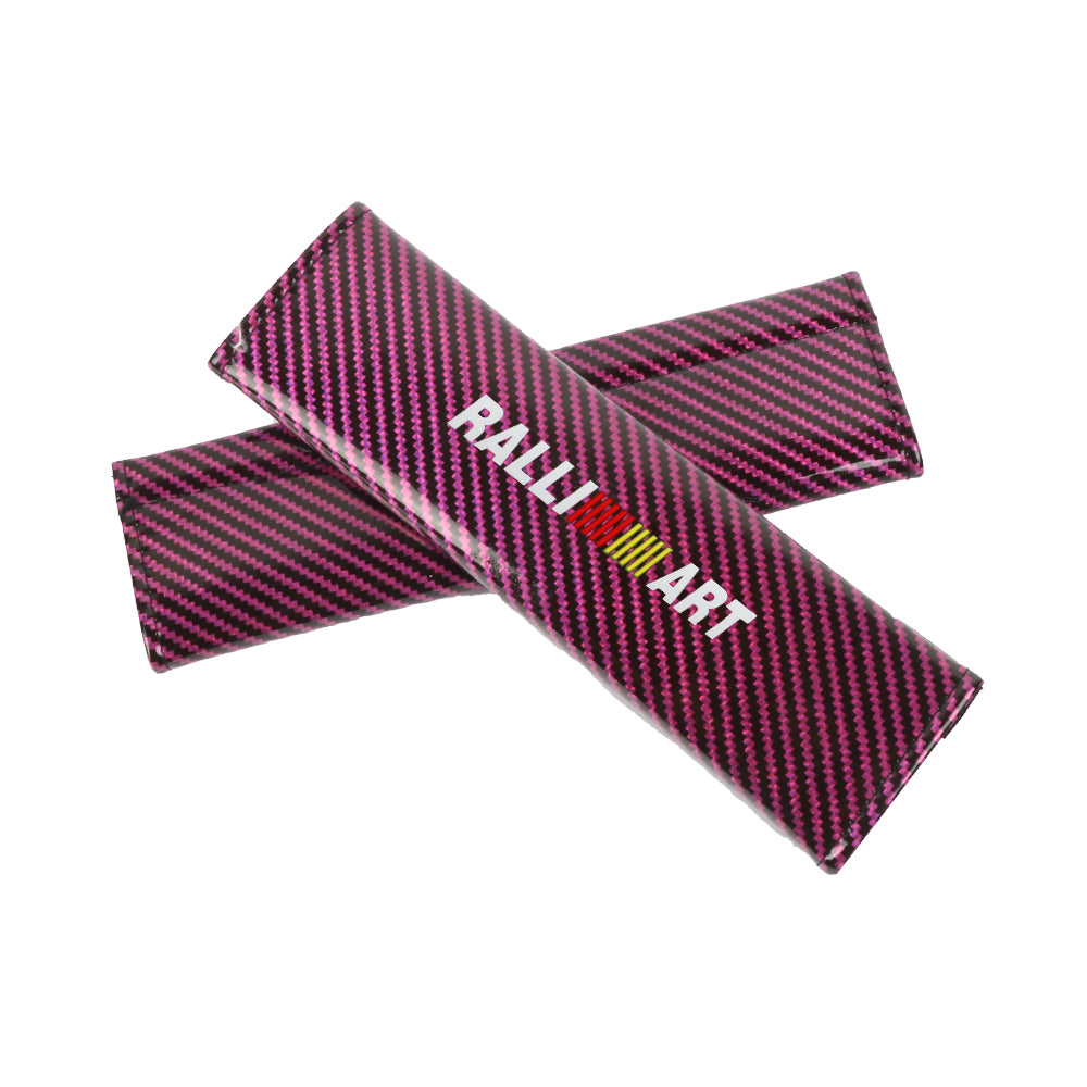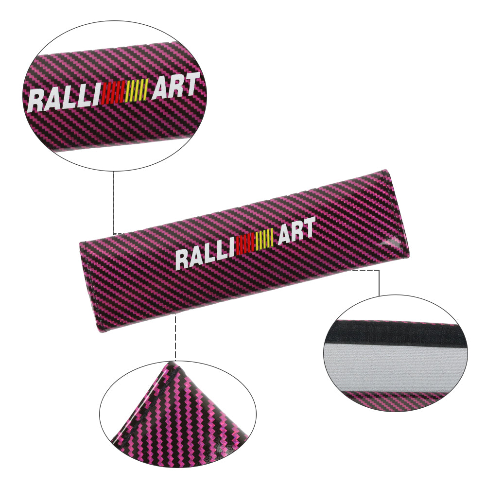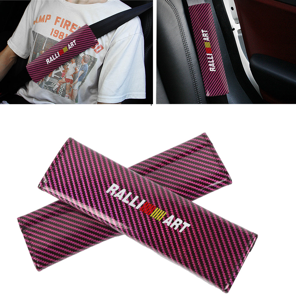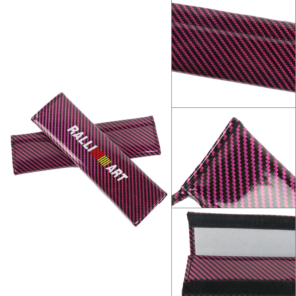 Brand New Universal 2PCS RALLIART Hot Pink Carbon Fiber Look Car Seat Belt Covers Shoulder Pad