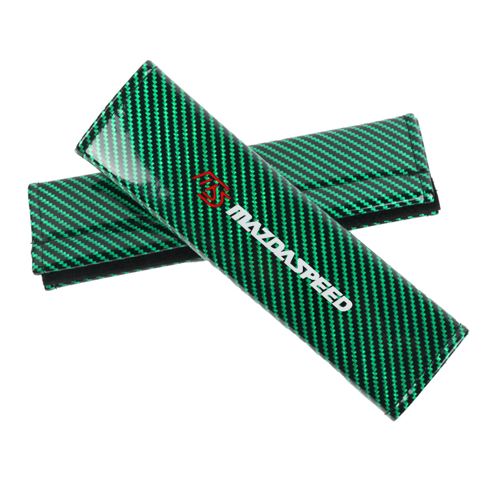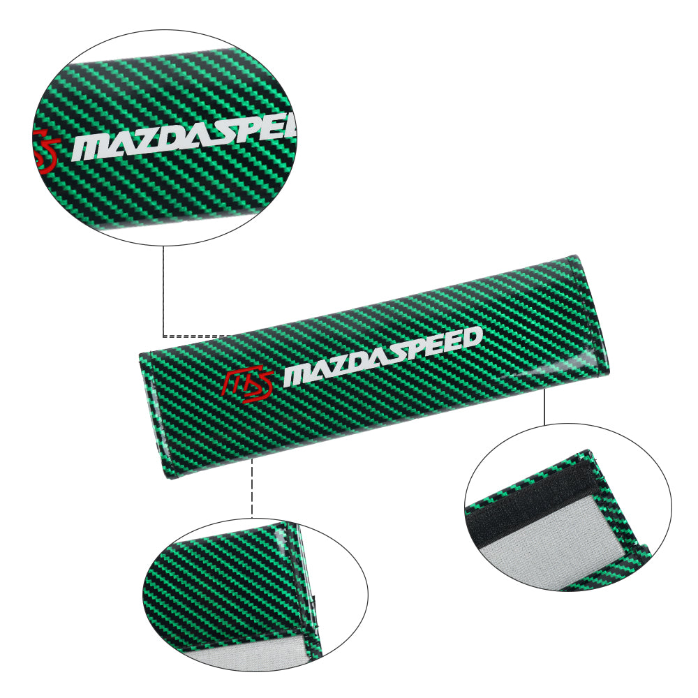 Brand New Universal 2PCS Mazdaspeed Green Carbon Fiber Look Car Seat Belt Covers Shoulder Pad