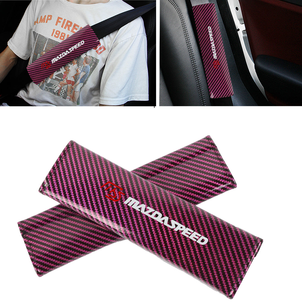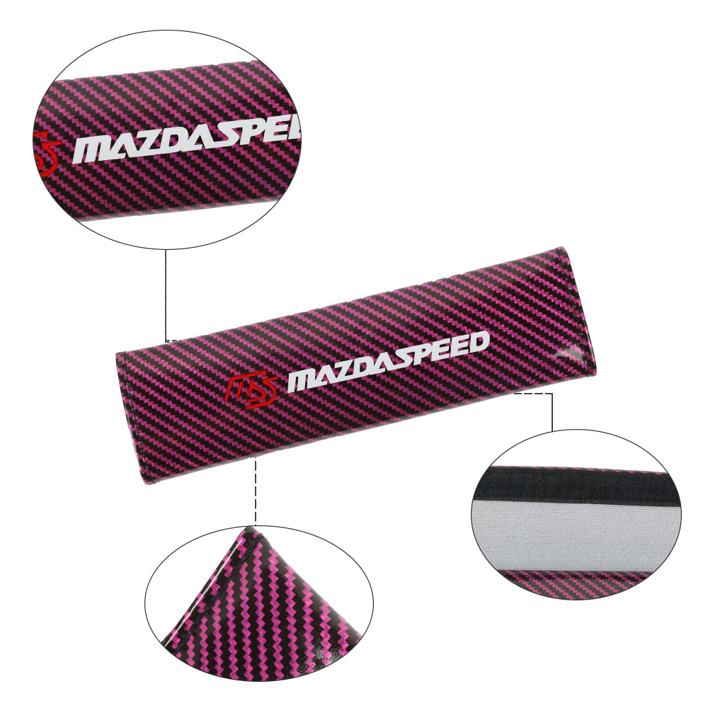 Brand New Universal 2PCS MAZDASPEED Hot Pink Carbon Fiber Look Car Seat Belt Covers Shoulder Pad