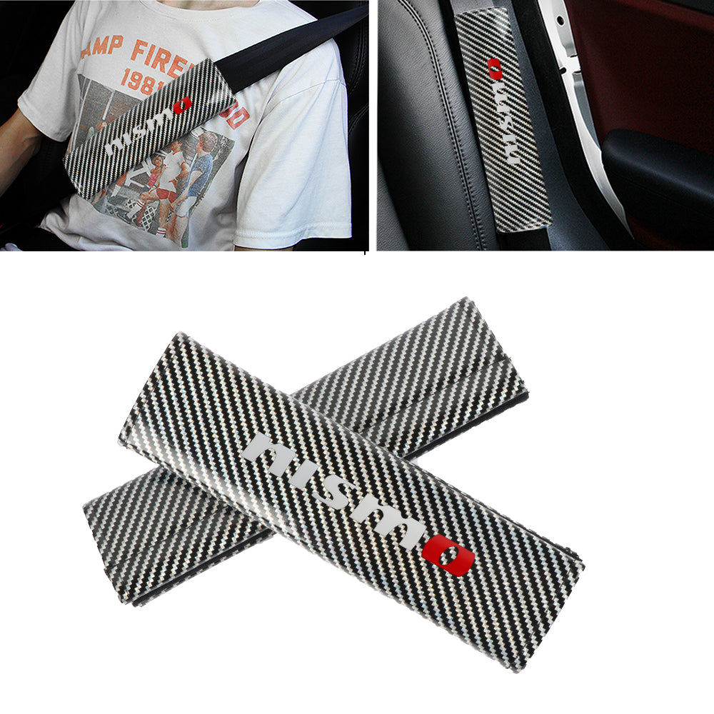 Brand New Universal 2PCS Nismo Silver Carbon Fiber Look Car Seat Belt Covers Shoulder Pad
