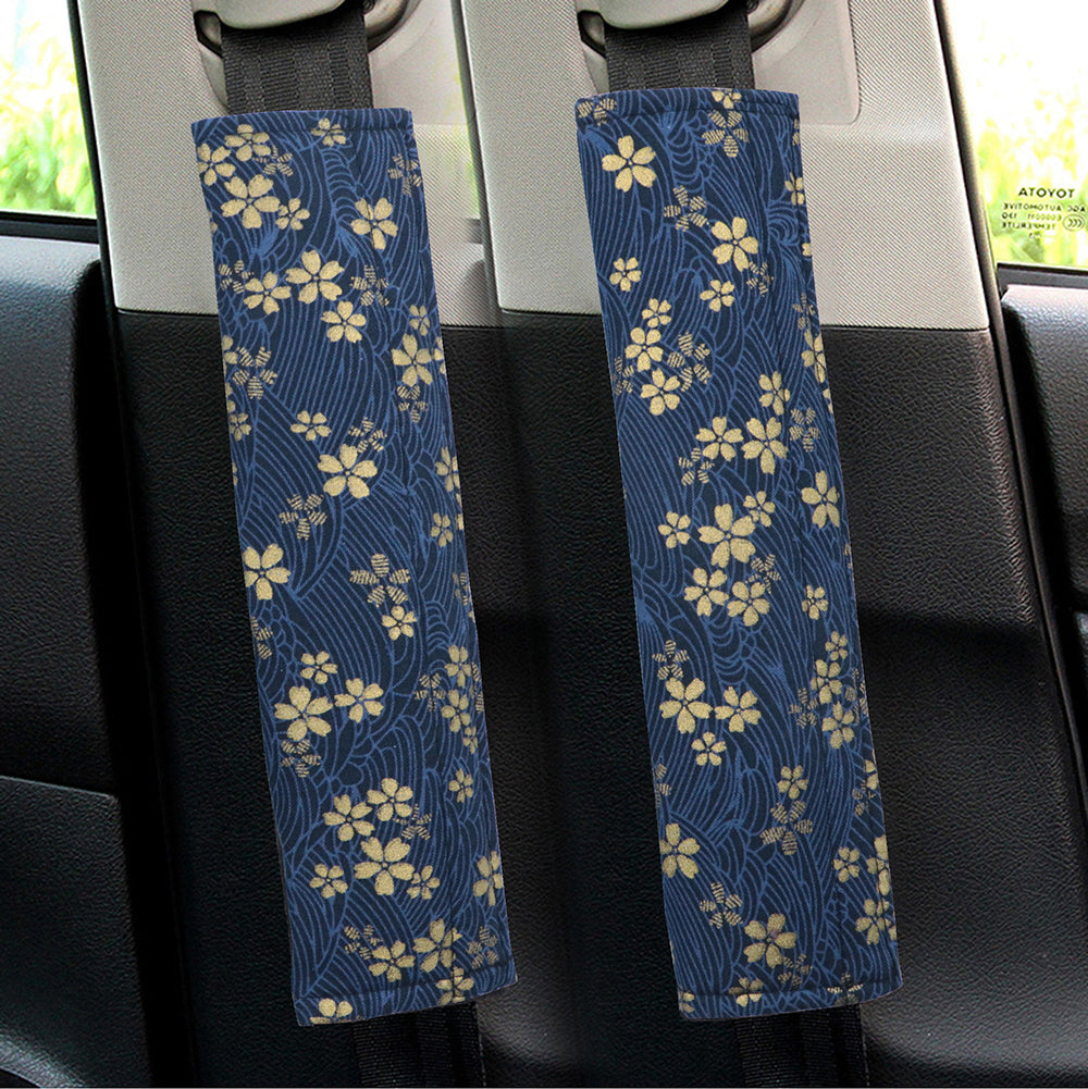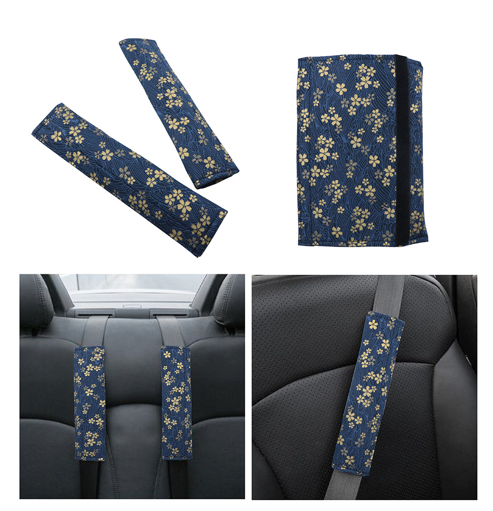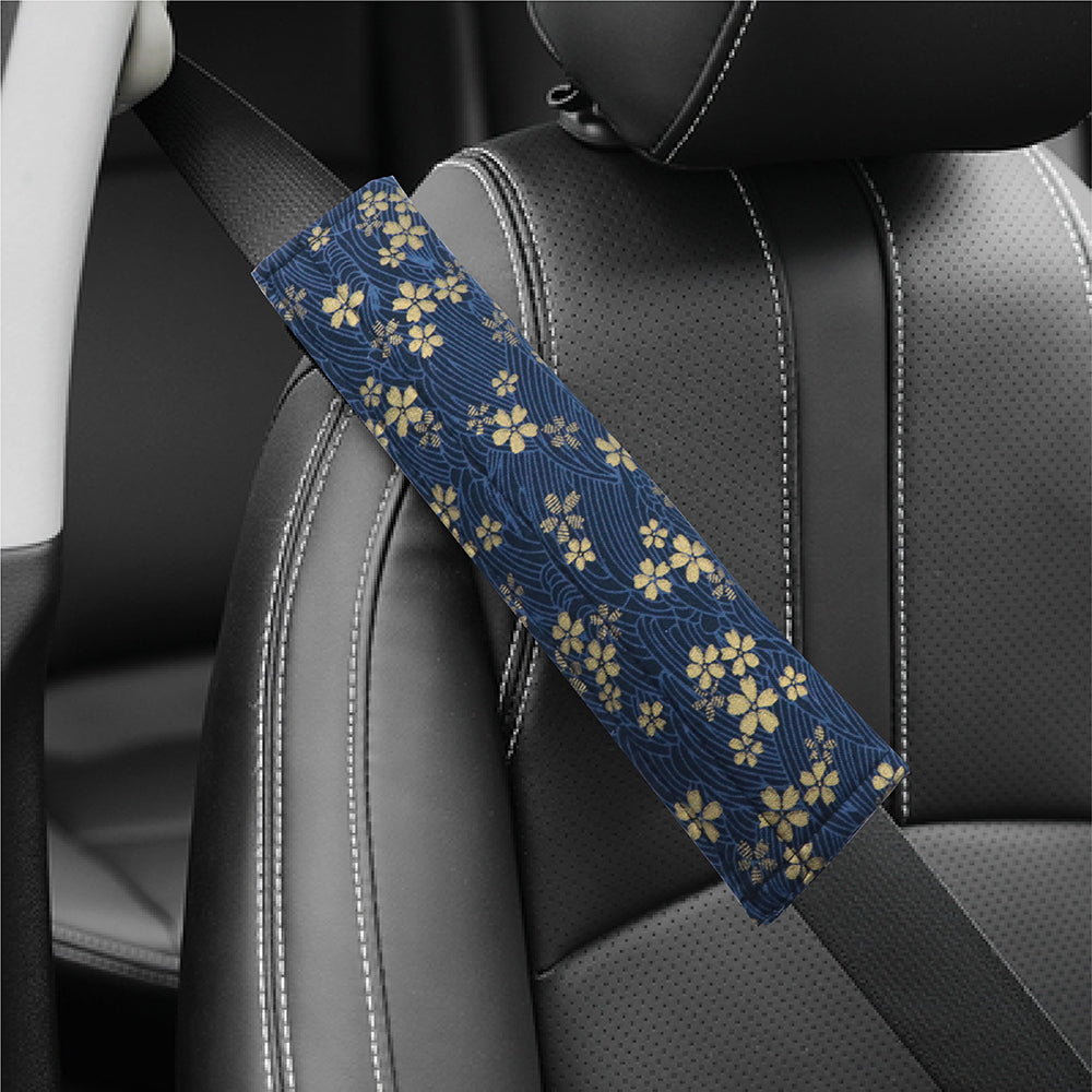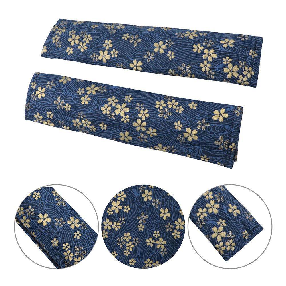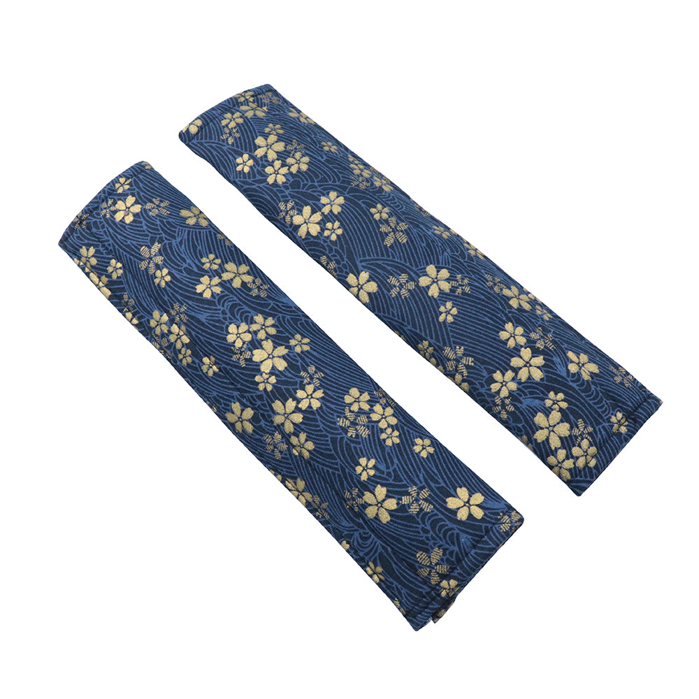 Brand New Universal 2PCS SAKURA Blue Flower Fabric Soft Cotton Seat Belt Cover Shoulder Pads