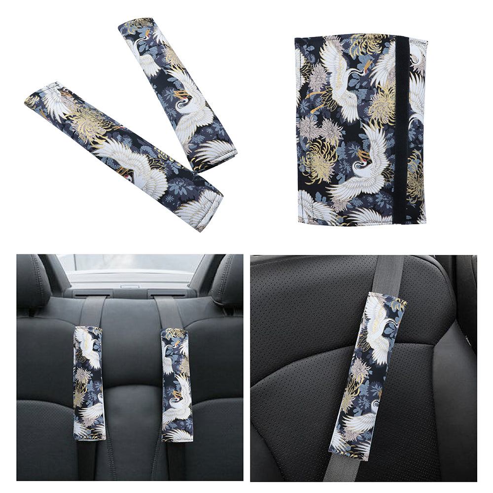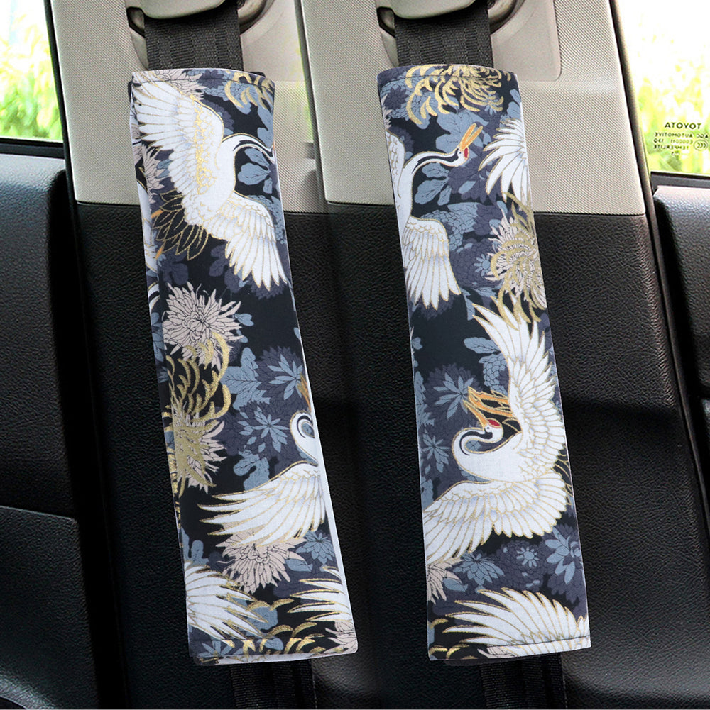 Brand New Universal 2PCS SAKURA Black Bird Fabric Soft Cotton Seat Belt Cover Shoulder Pads