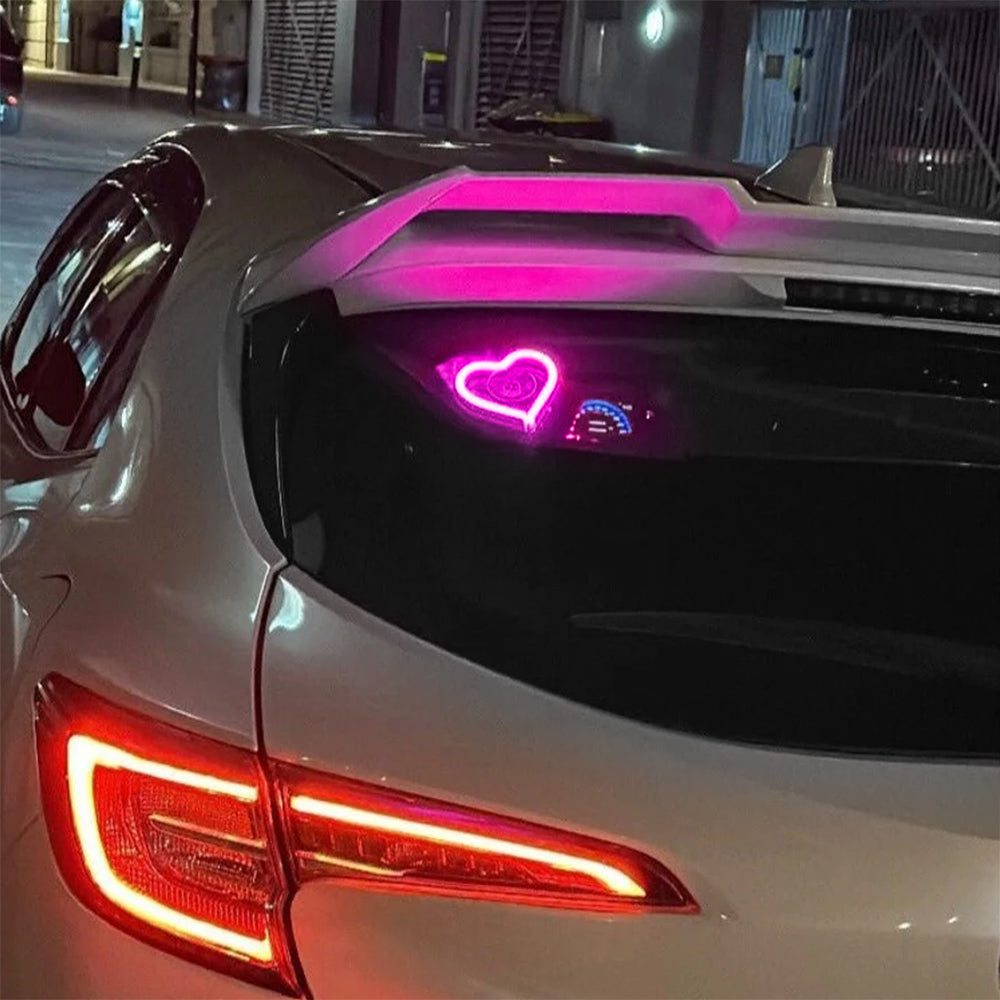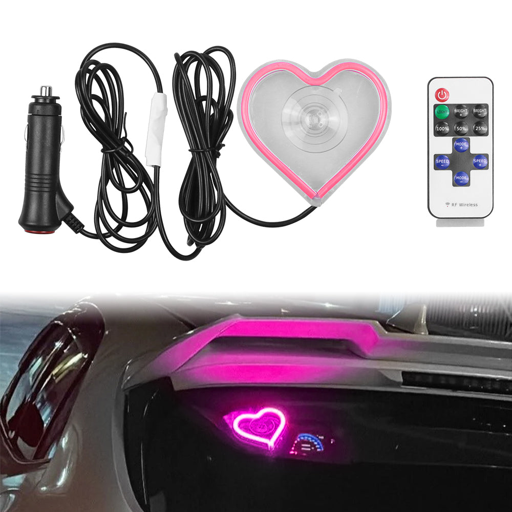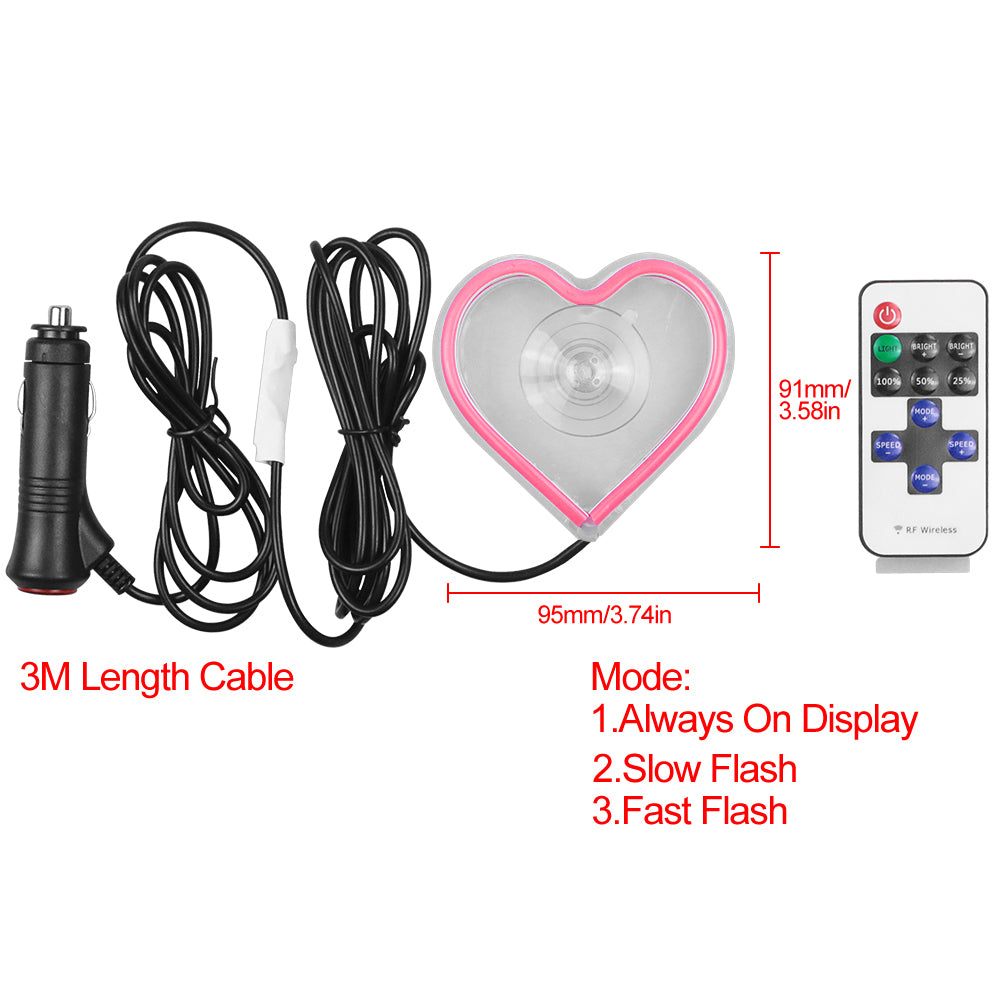 BRAND NEW UNIVERSAL LOVE HEART PINK LED Neon Flash Light Car Window Glow Electric Remote Control Lamp