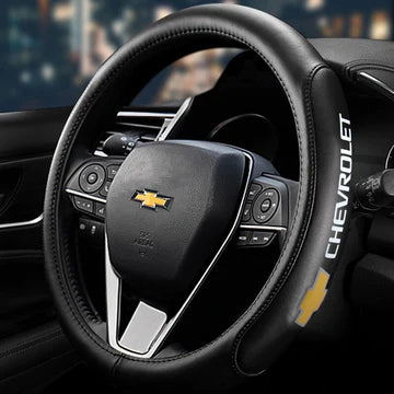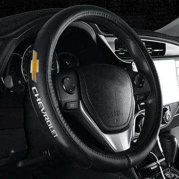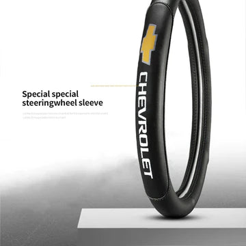 Brand New Universal Chevrolet Black PVC Leather Steering Wheel Cover 14.5"-15.5" Inches