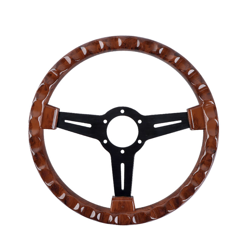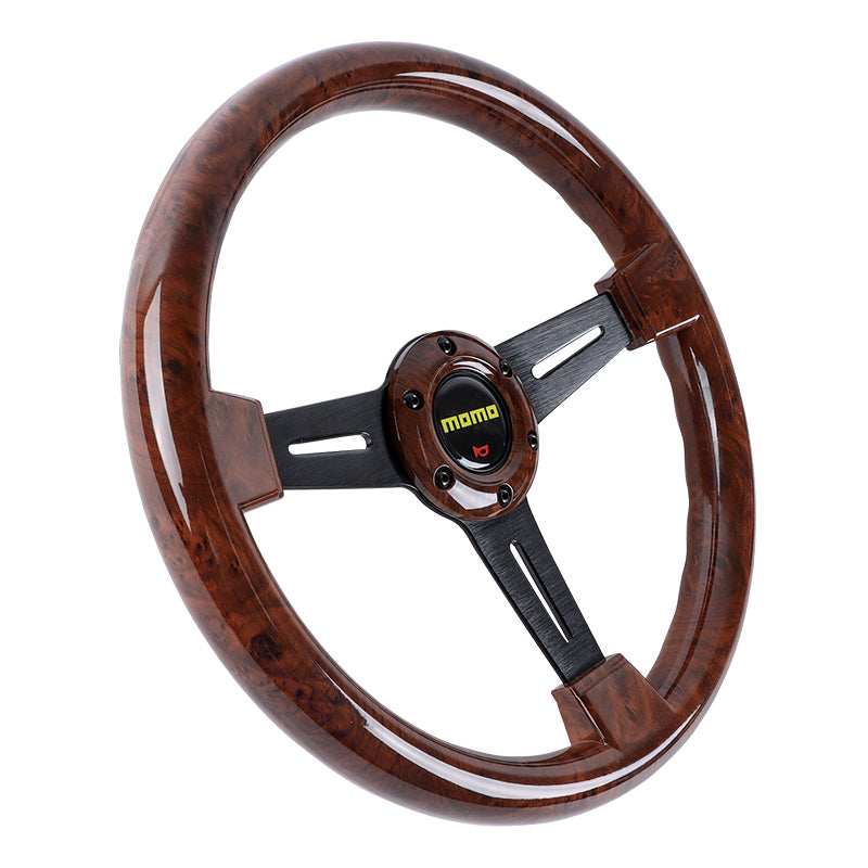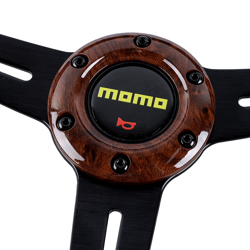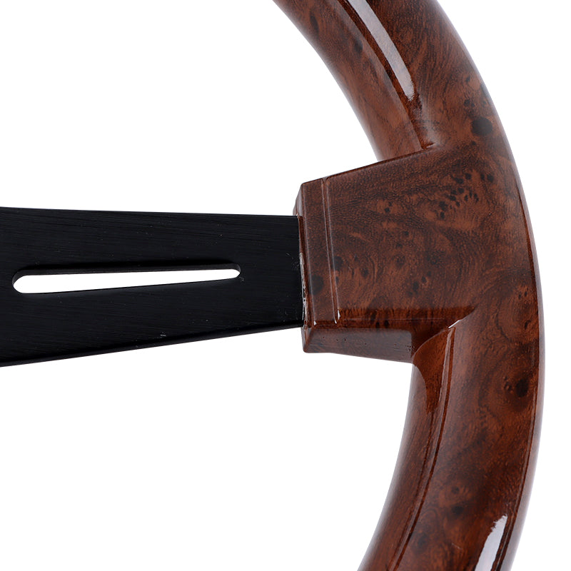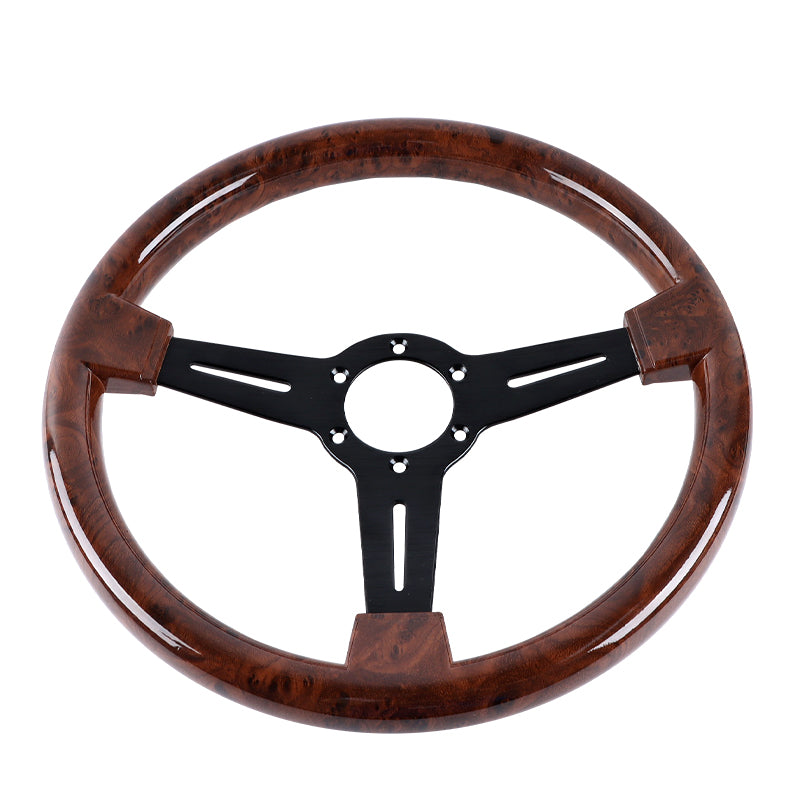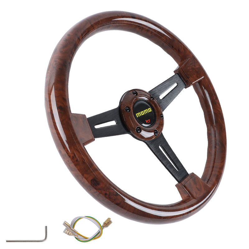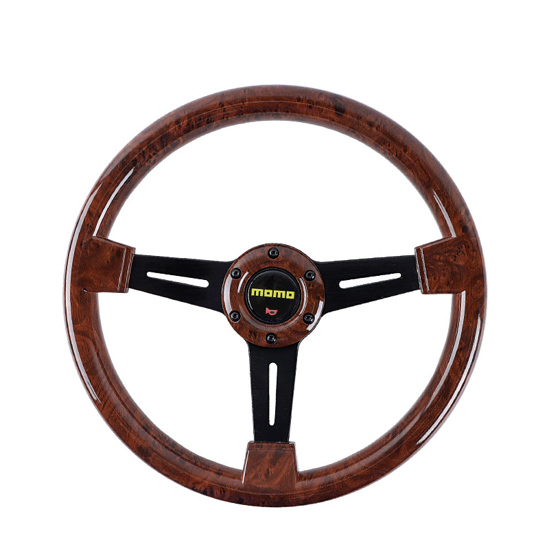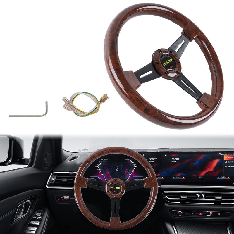 Brand New 350mm 14" Universal Momo Dark Wood ABS Racing Steering Wheel Black Spoke