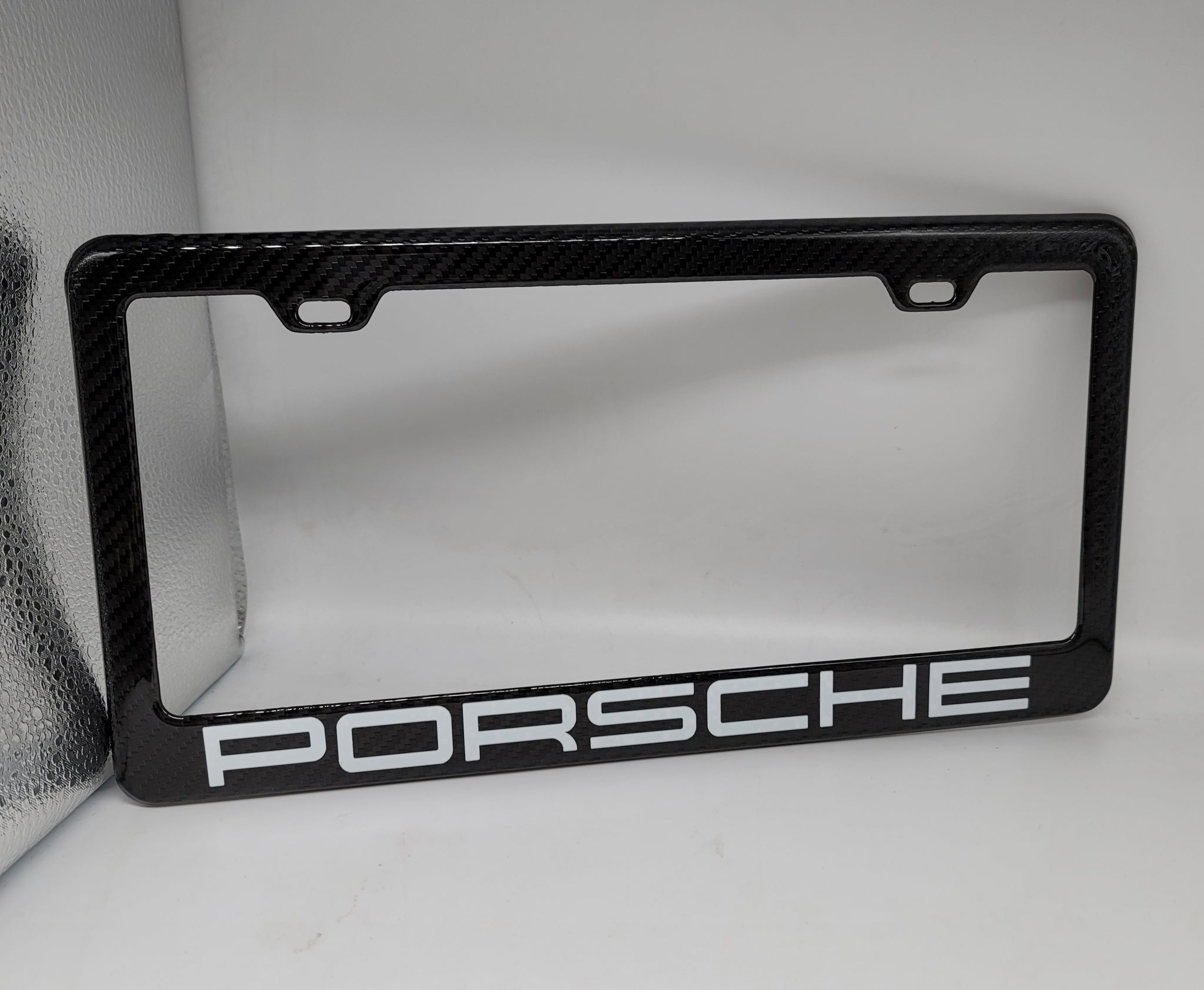 Brand New 1PCS PORSCHE 100% Real Carbon Fiber License Plate Frame Tag Cover Original 3K With Free Caps